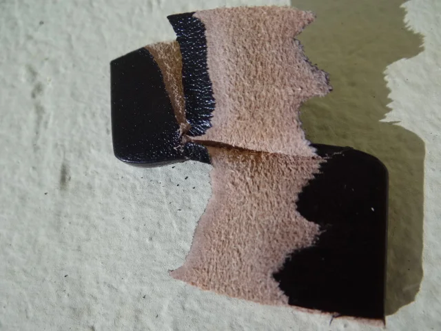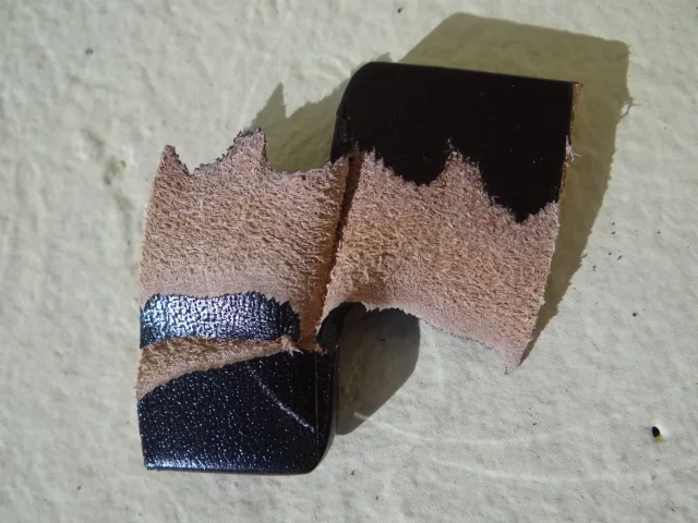 Ремень изготовлен из натуральной кожи. Но я могу сказать, есть ли тонкий слой кожи с натуральным лицевым покрытием сверху, а затем спилок или просто один слой кожи. Смотрите фото. Запах кожи. Качество хорошее.