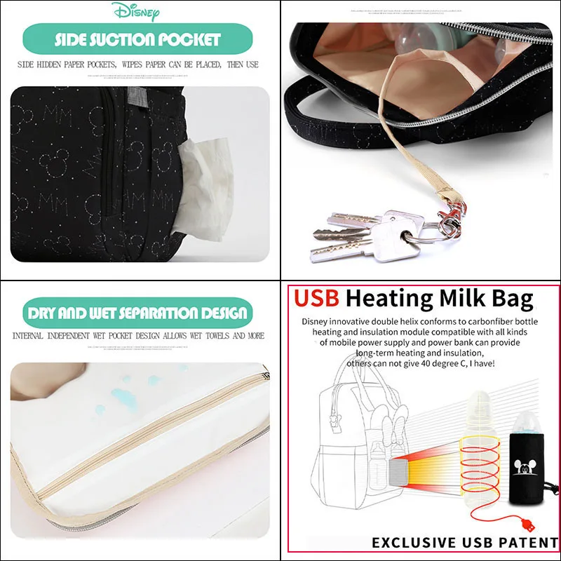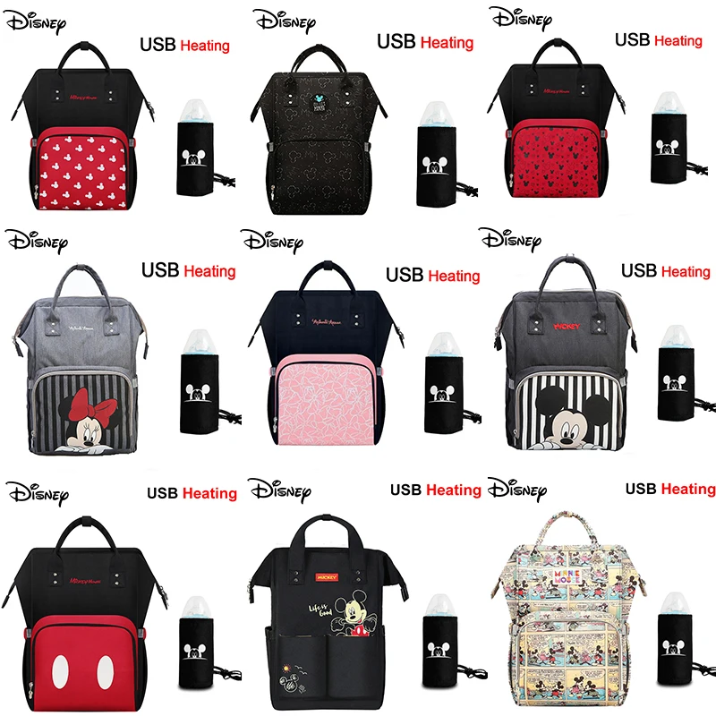 Сумка для подгузников Disney с USB-разъемом, дорожная сумка для мам и малышей для ухода за ребенком, влажная Сумка для малышей с Микки Маусом