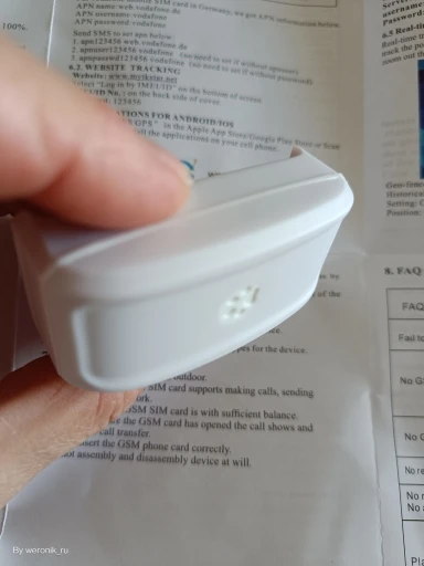 Доставка задержалась на 10 дней от заявленного, в общей сложности до Москвы товар шел месяц, хотя продавец отправил заказ быстро. Радует, что товар полностью соответствует описанию, внешне очень нравится изоляция трекера, выглядит как силиконовая капсула, на первый взгляд очень хорошо защищён от влаги и пыли, в ближайшее время буду тестировать на собаке в лесу. Инструкция на английском, но там ничего сложного, раскрутила болтики (отвёртка в комплекте) вставила СИМ карту, скачала приложение, зарегистрировала трекер, пока все нравится