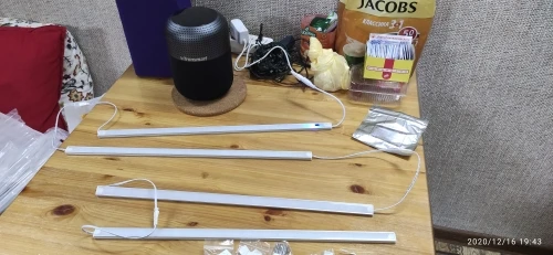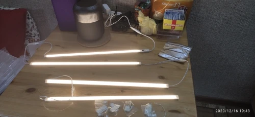 Получил очень хорошо Упакованные и защищенные. Кабели особенно длинные, для меня слишком много, но их легко скрыть. Удивленный яркостью, замена другого света эта добавила солнце на моей кухне, ультра приятный и не ослепляющий, чрезвычайно практично включается, когда у вас влажные или сжимаемые руки благодаря выключателю без контакта просто пропустите руку спереди. Я настоятельно рекомендую этот продукт, который является необычным.