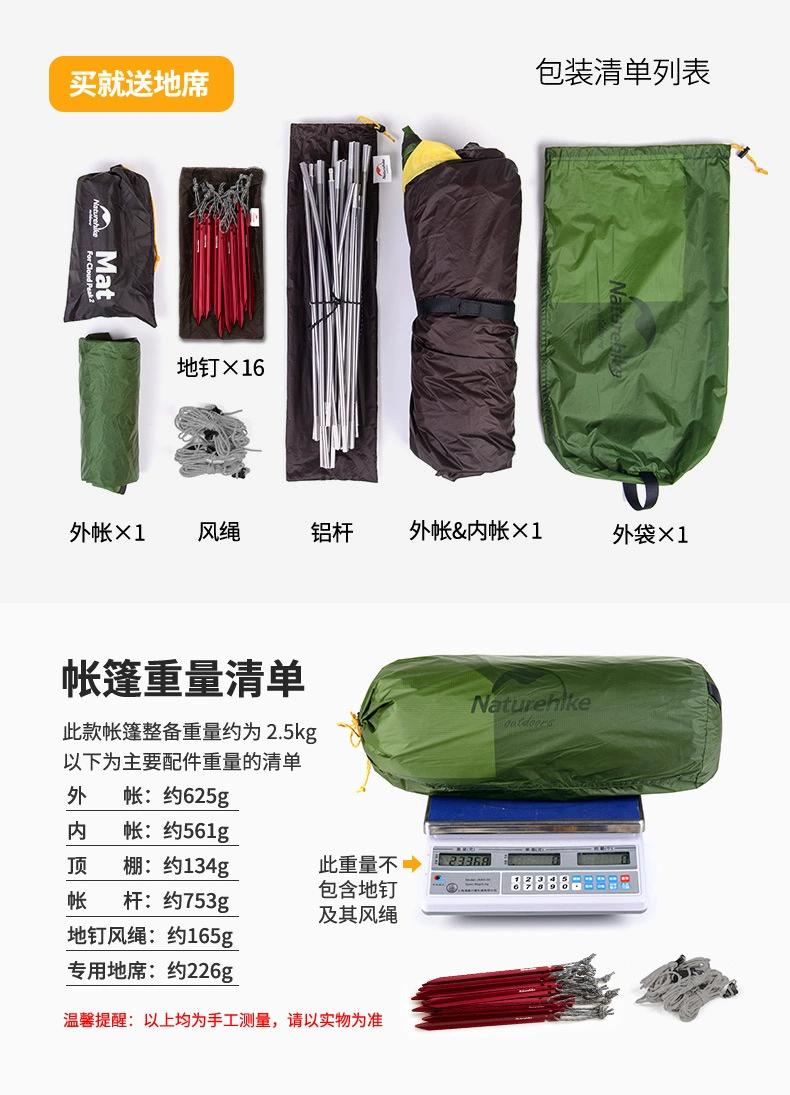 Список аксессуаров: Внешняя палатка/Внутренняя палатка/гвоздь/ветряная веревка/