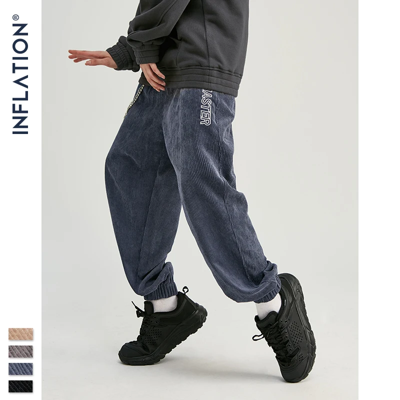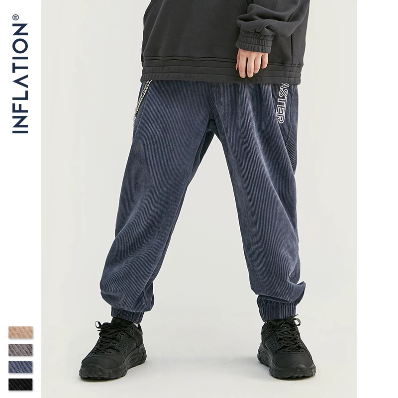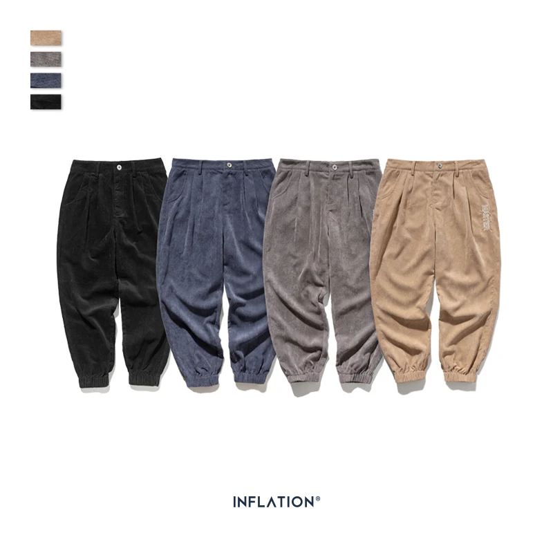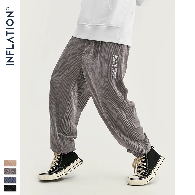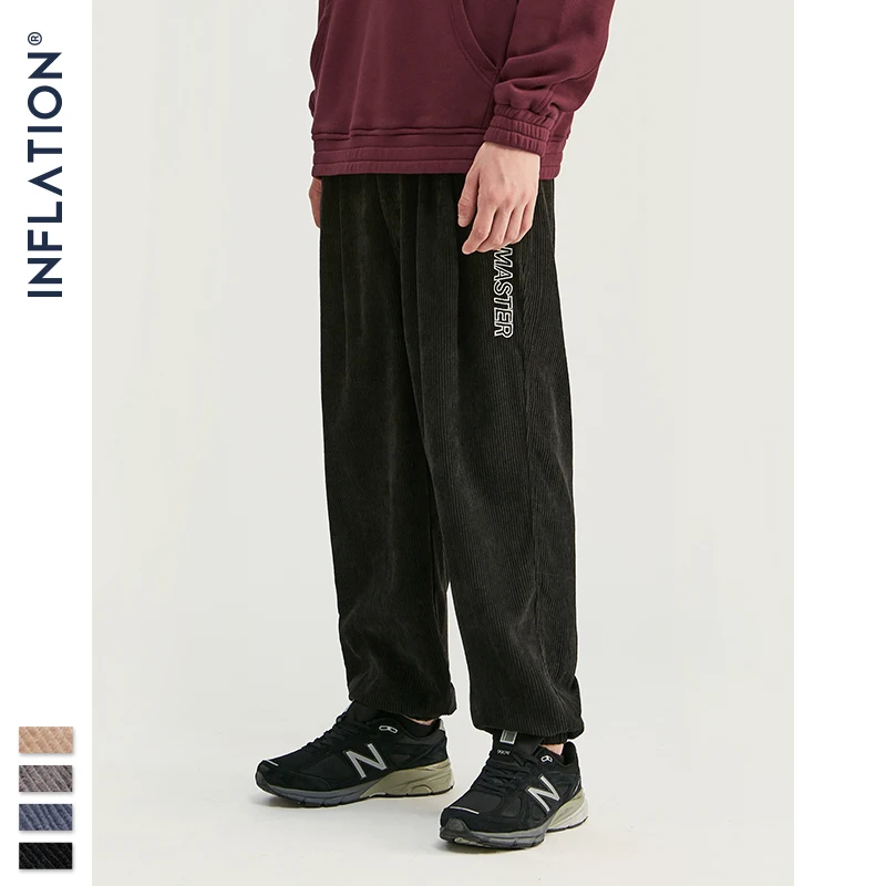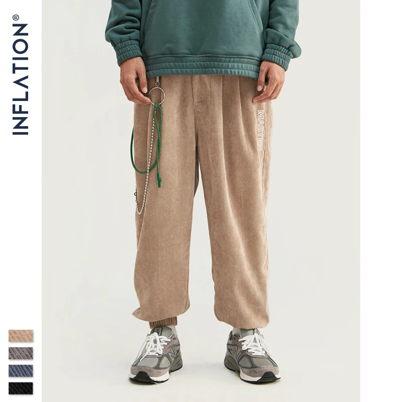 INFLATION 2020 коллекция, мужские повседневные вельветовые брюки для бега, мужские свободные вельветовые комбинезоны, повседневные штаны, однотонные 93305W