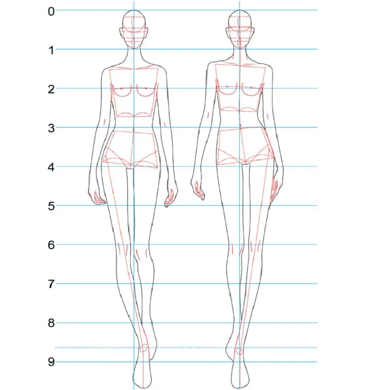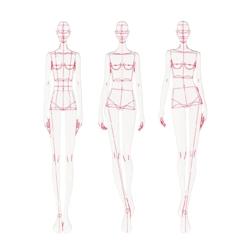 Модная линейка Модные линии рисования человеческий динамический шаблон для ткани рендеринг шаблон решений линеек