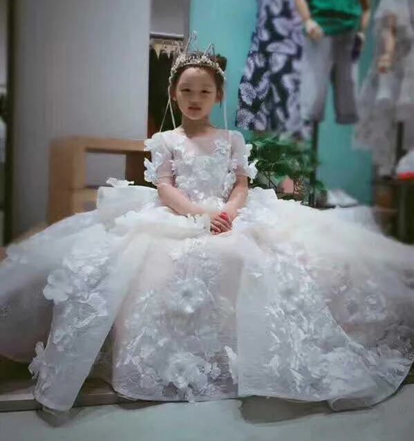 Роскошные платья для девочек с жемчужинами и цветами, бальное плать...