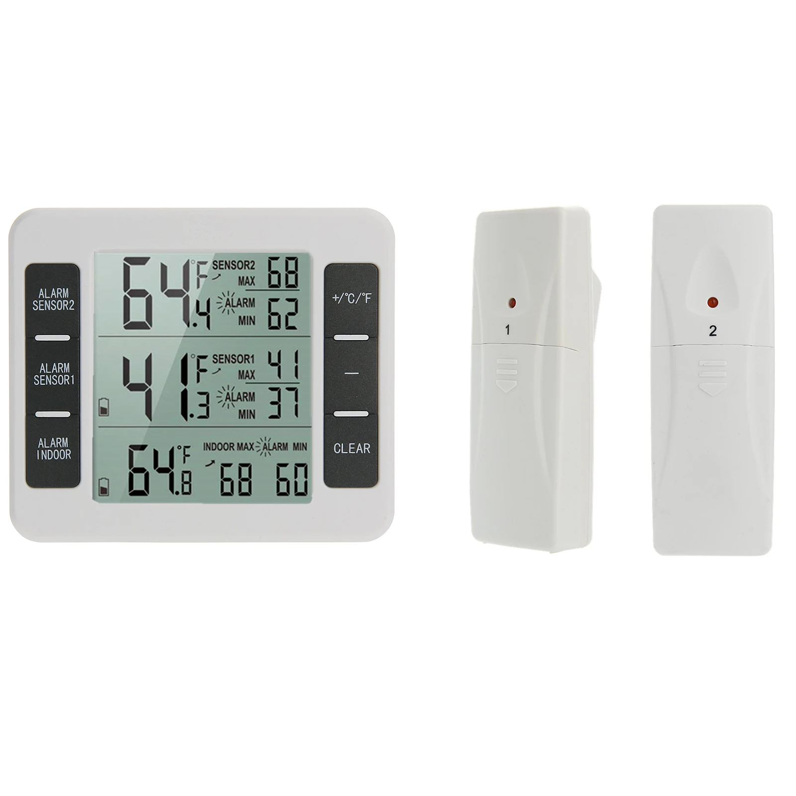 Это беспроводной цифровой Морозильный термометр. Его можно использовать в морозильной камере и использовать в качестве термометра внутри и снаружи. Его собственная звуковая сигнализация может предупредить вас о превышенной температуре во времени.