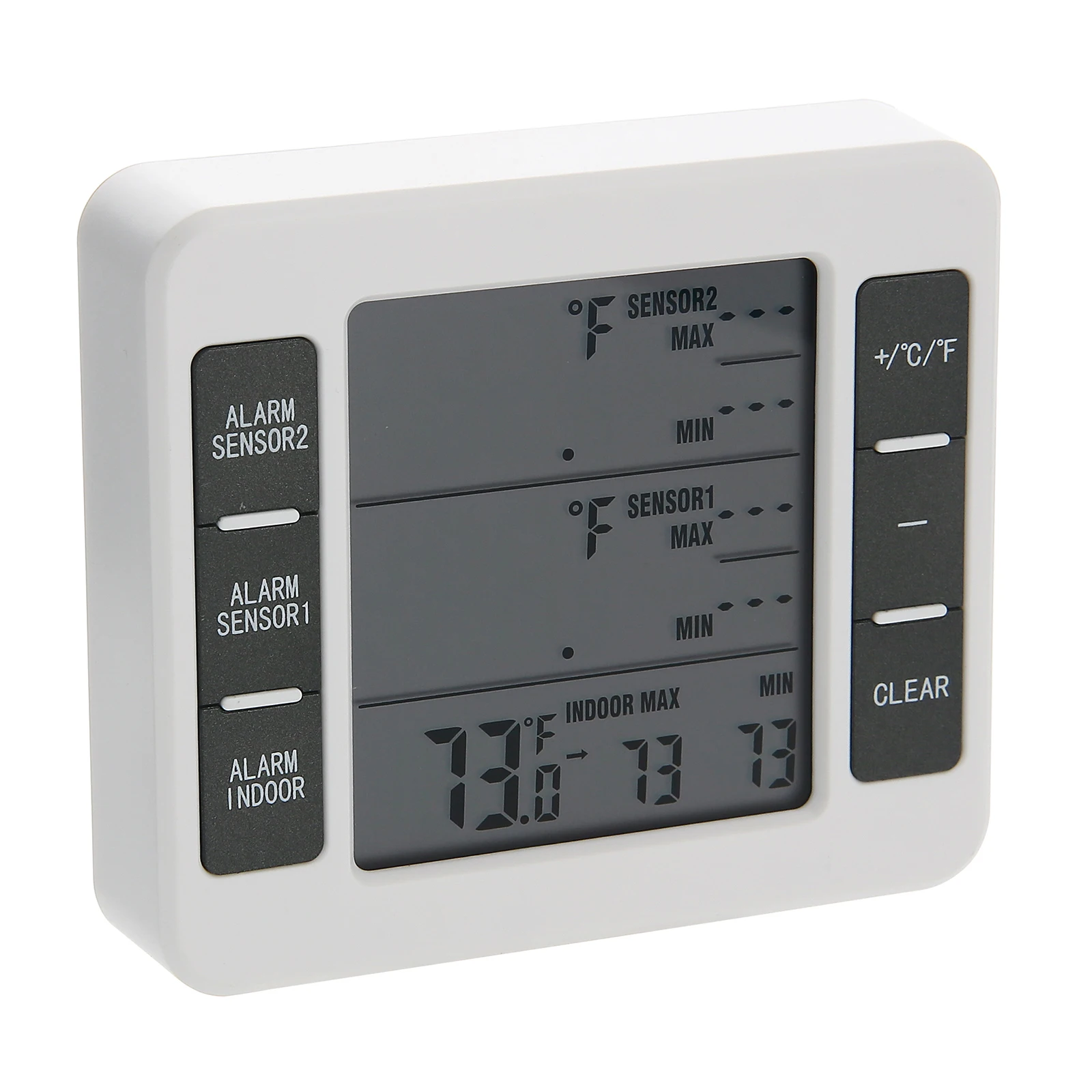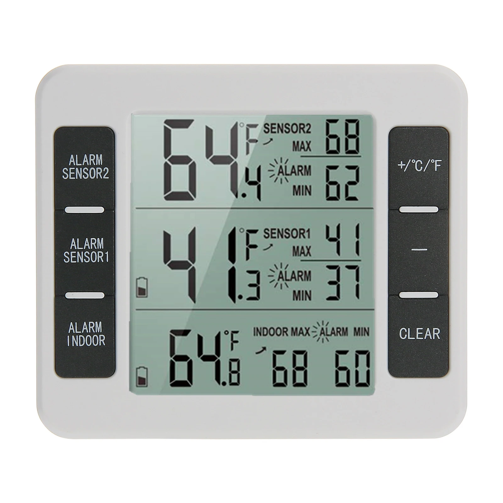 Включает в себя 24 часа в сутки Мин и максимальная температура записи, и вы можете легко контролировать изменение температуры вашего холодильника и обеспечивает двойную защиту для вашей безопасности пищевых продуктов.