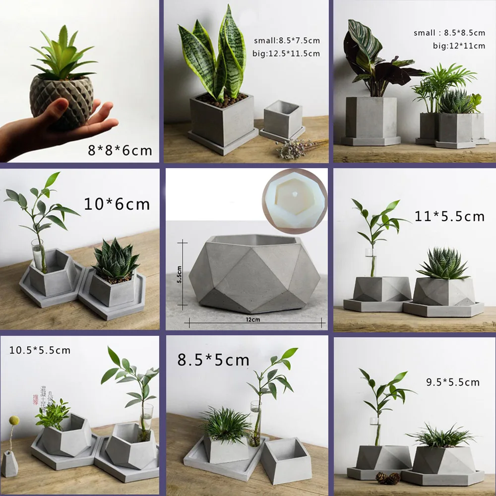 Много геометрических форм для горшка, цементные силиконовые формы для горшка, геометрические формы для бетонных горшков из гипса силиконовые формы