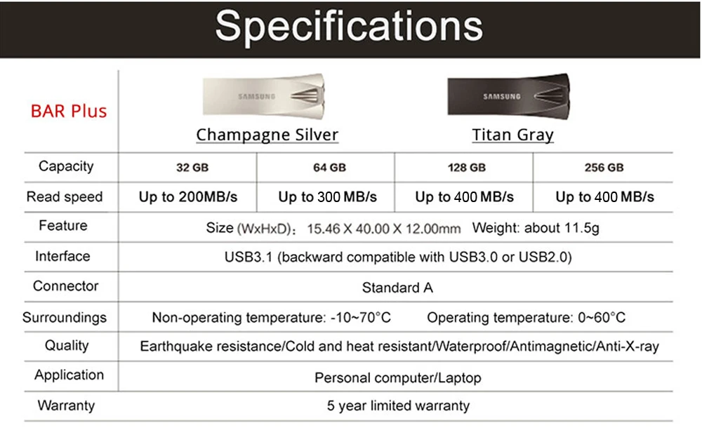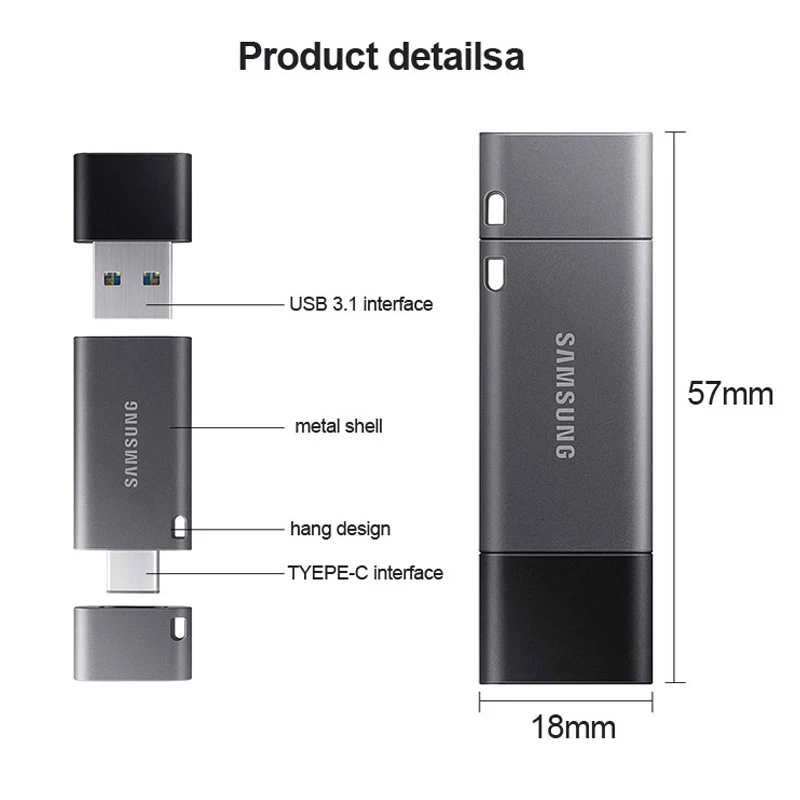 SAMSUNG USB 3,1 флэш-накопитель 32 Гб 200 МБс.с 64 Гб 300 МБс.с 128 ГБ 256 Гб 400 МБс.с металлический Type-A накопитель для смартфона планшетного компьютера