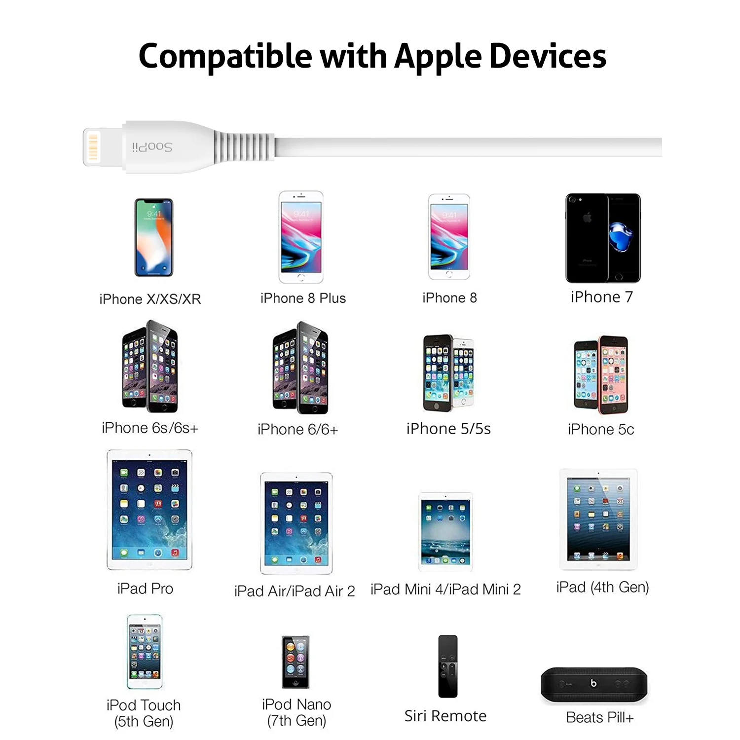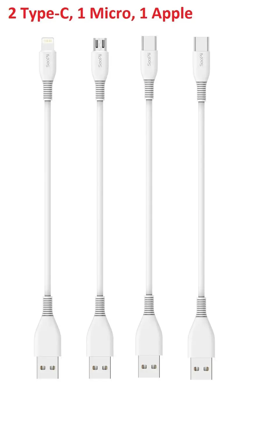 Короткие кабели SooPii для Lightning iPhone 7 дюймов Micro USB Type C для многопортовой зарядной станции 4 шт.