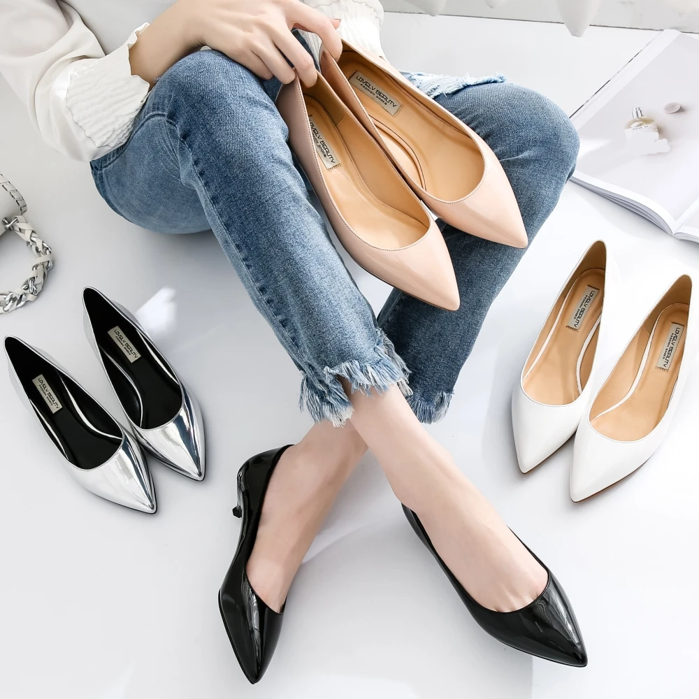 Туфли-лодочки женские классические, натуральная кожа, низкий каблук, заостренный носок, Офисная Классическая обувь для работы, белые телесные цвета, E0007, весна