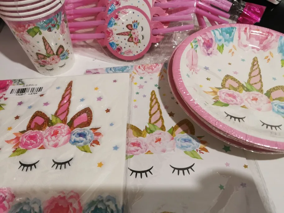 Набор одноразовой посуды в виде единорога для детского дня рождения