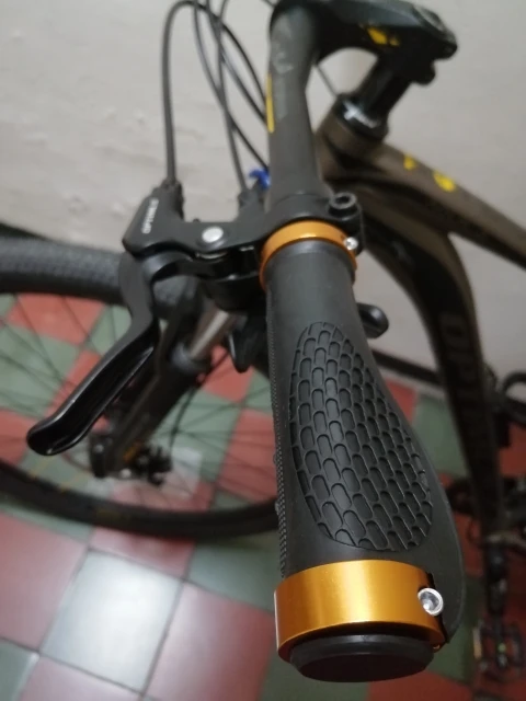 hilo de prensas levemente irregular. aún así. muy bien ajuste, no se gira en el manillar, y es muy cómodo de usar a diario. satisfecho con el artículo