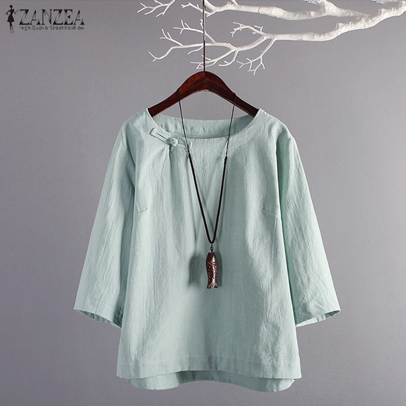Блузка женская льняная, с пуговицами-пластинами, лето 2021