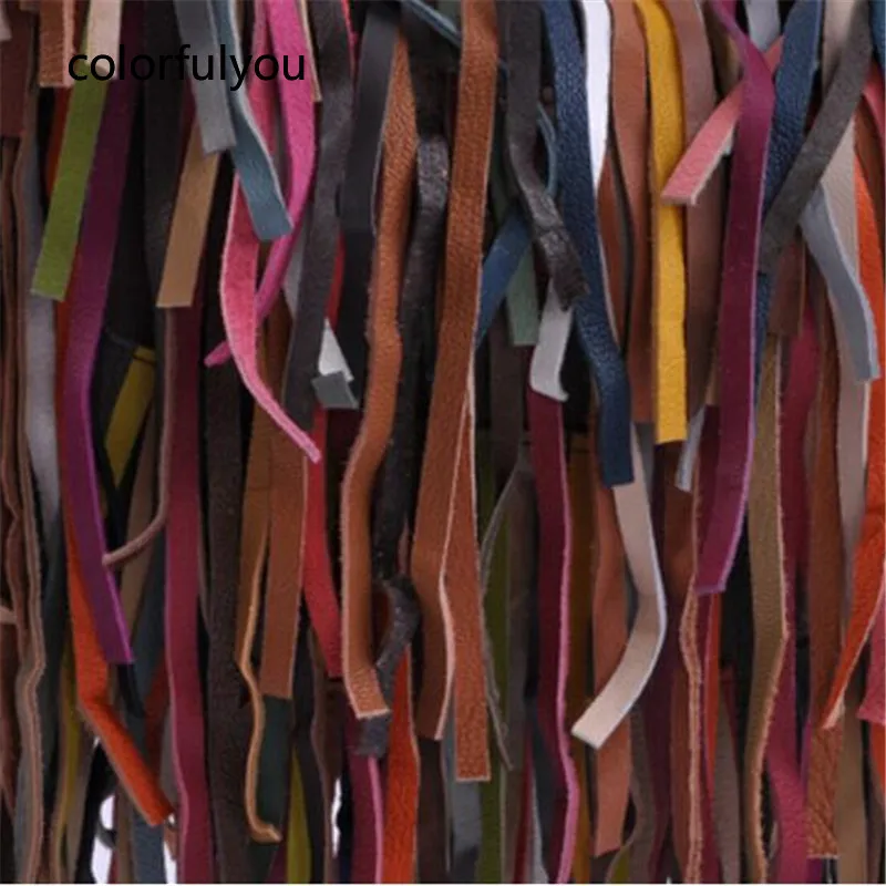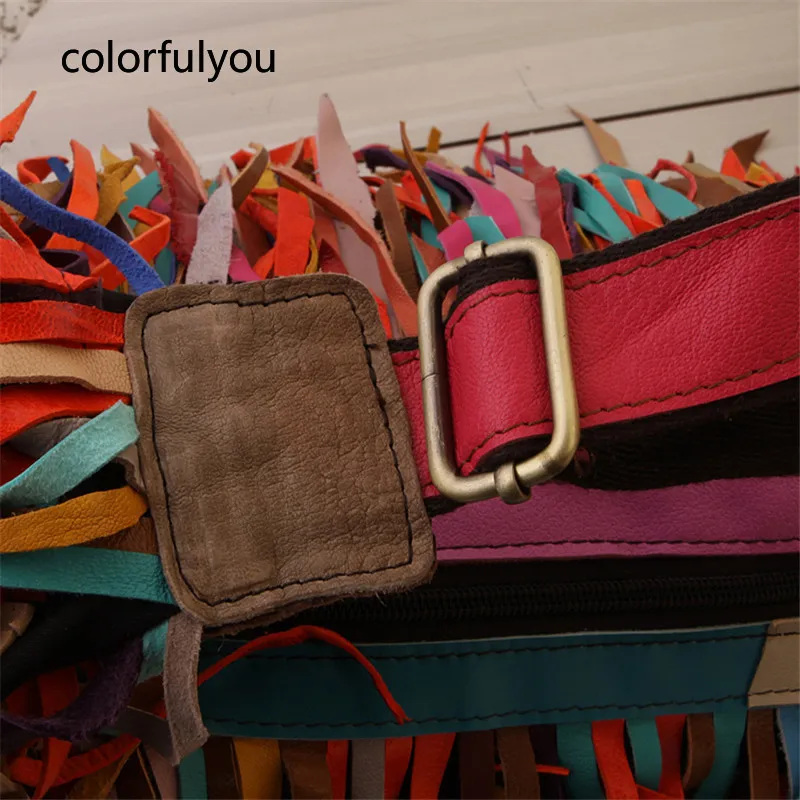 Новинка 100%, Сумки из натуральной кожи с кисточками, модная женская сумка через плечо с бахромой, разноцветные Лоскутные сумки из овечьей кожи, повседневные пляжные сумки
