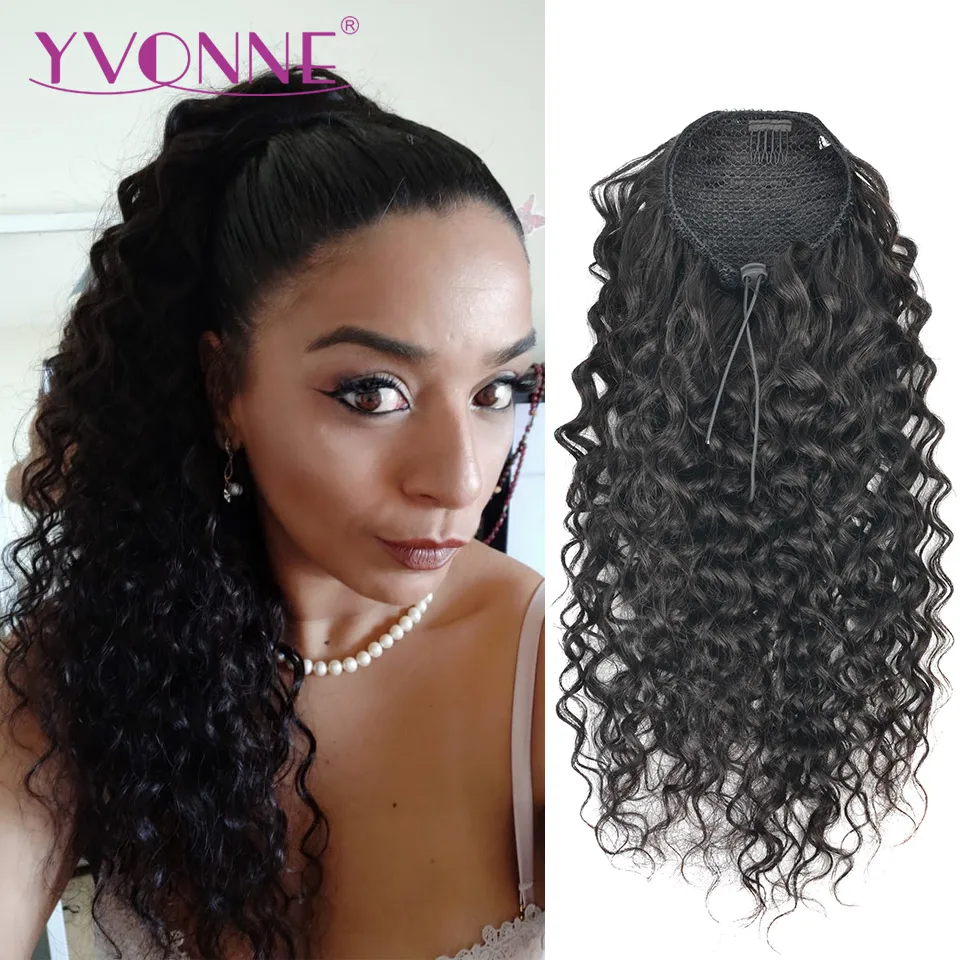 Yvonne, итальянские вьющиеся волосы на шнурке, человеческие волосы на заколке для наращивания, бразильские натуральные волосы естественного цвета, 1 шт.