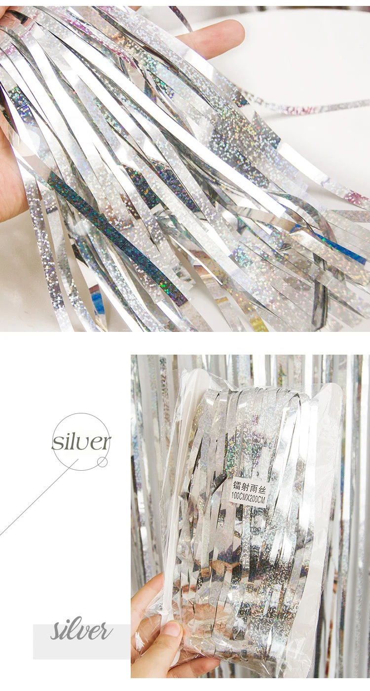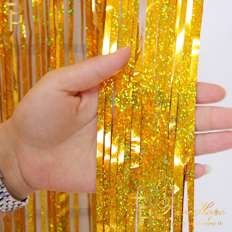 Высокое качество Лазерная блестящая Обновленная Золотая фольга бахрома занавеска С Блестками