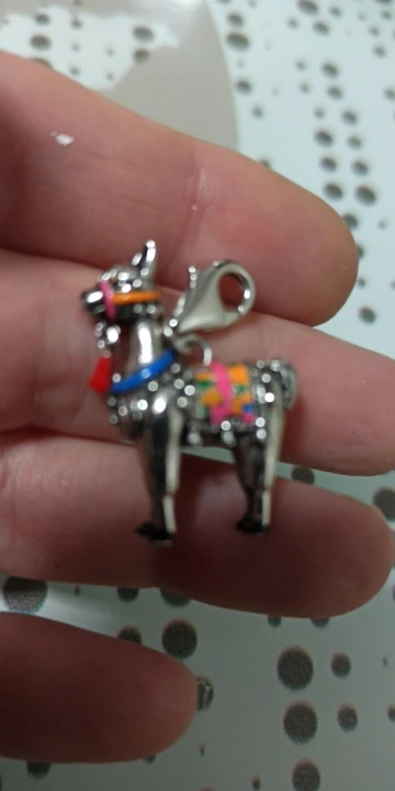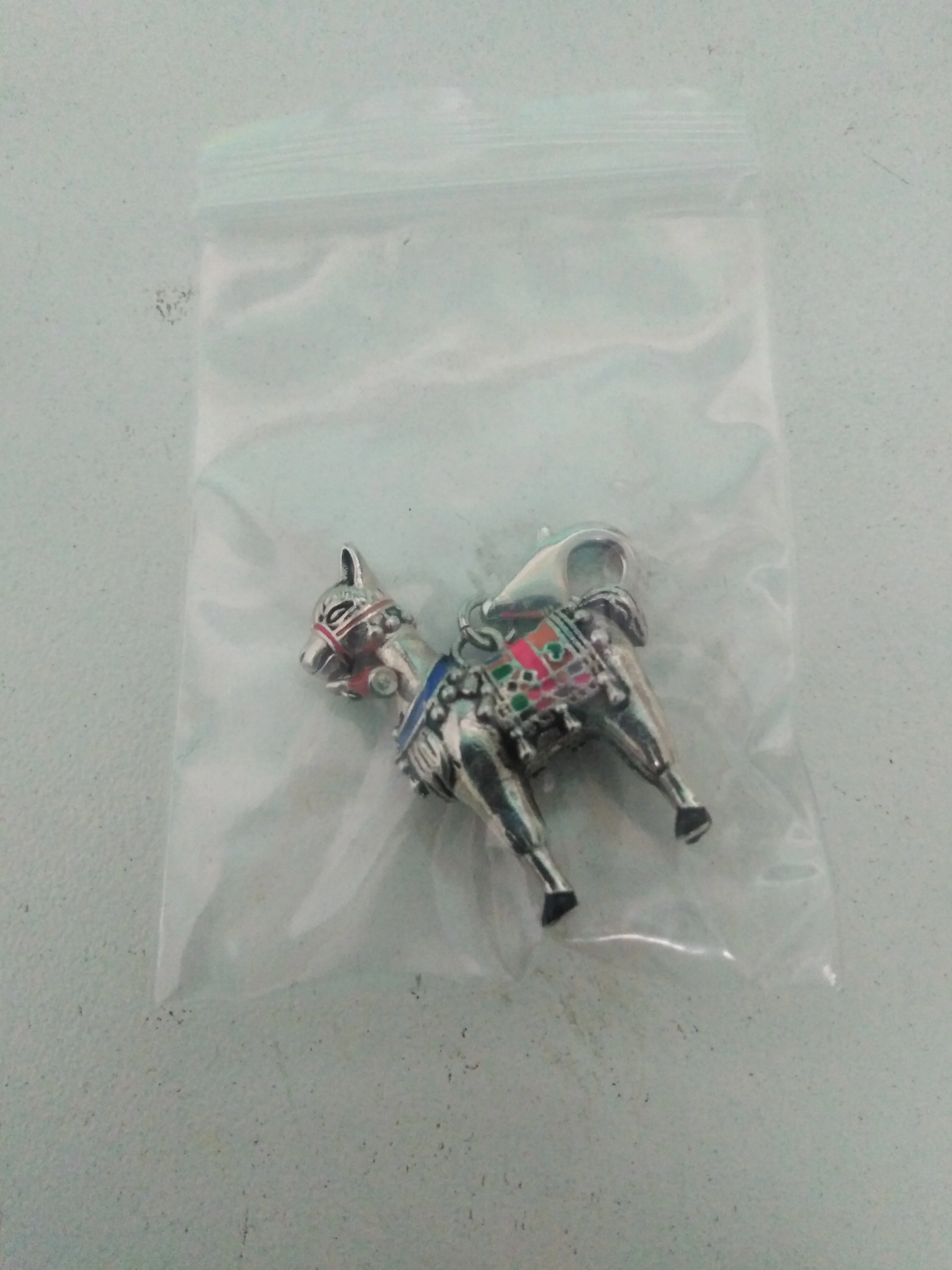 Почему-то все изделия этого продавца выглядят как сделанные из простого металла, а не из серебра, хотя стоит клеймо, что это серебро 925. Сама подвеска красивая, у ламы даже есть колокольчик.