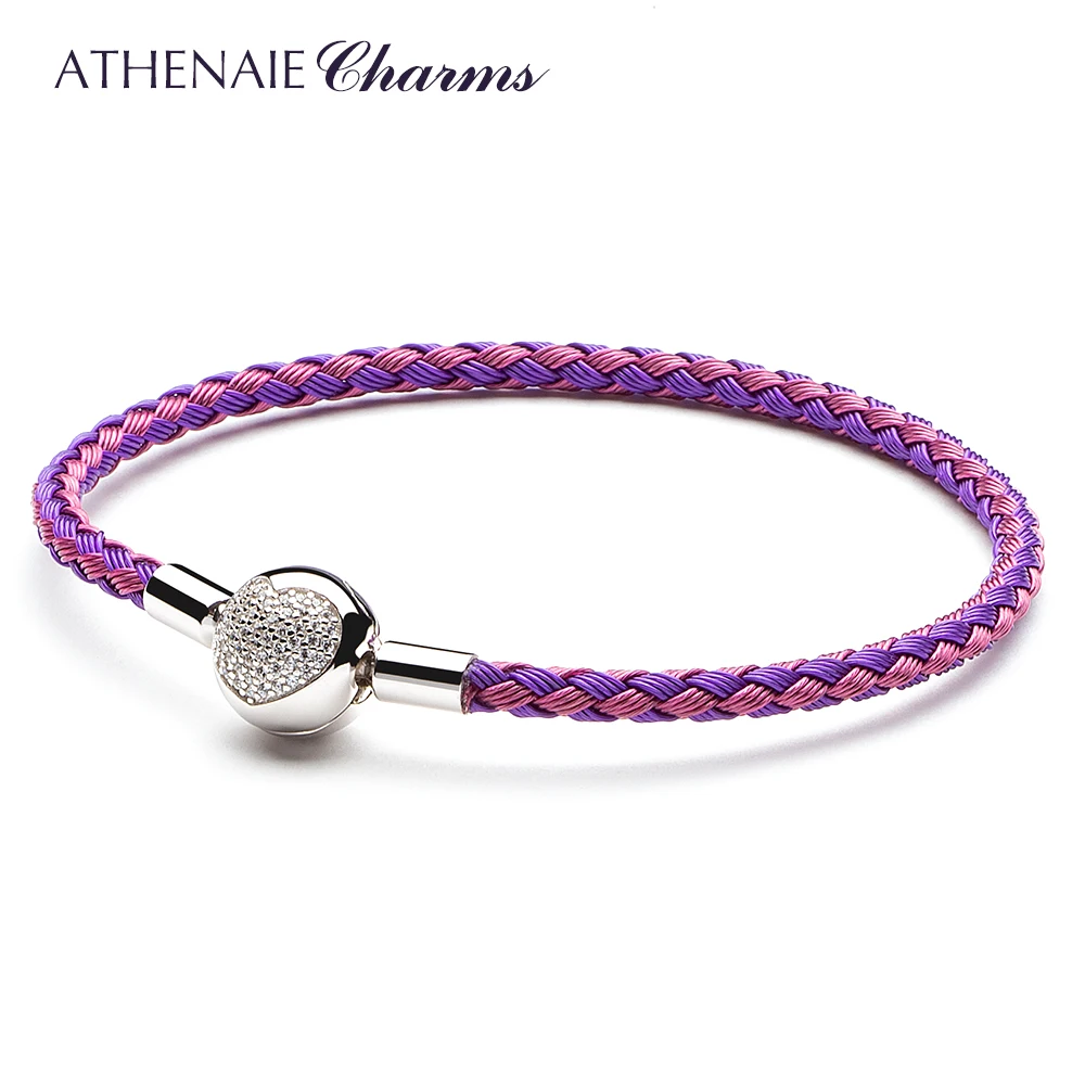 Женский браслет ATHENAIE, фиолетовый и розовый браслет из стерлингового серебра 925 пробы с застежкой в виде сердца и сердечка, Подарочный Шарм