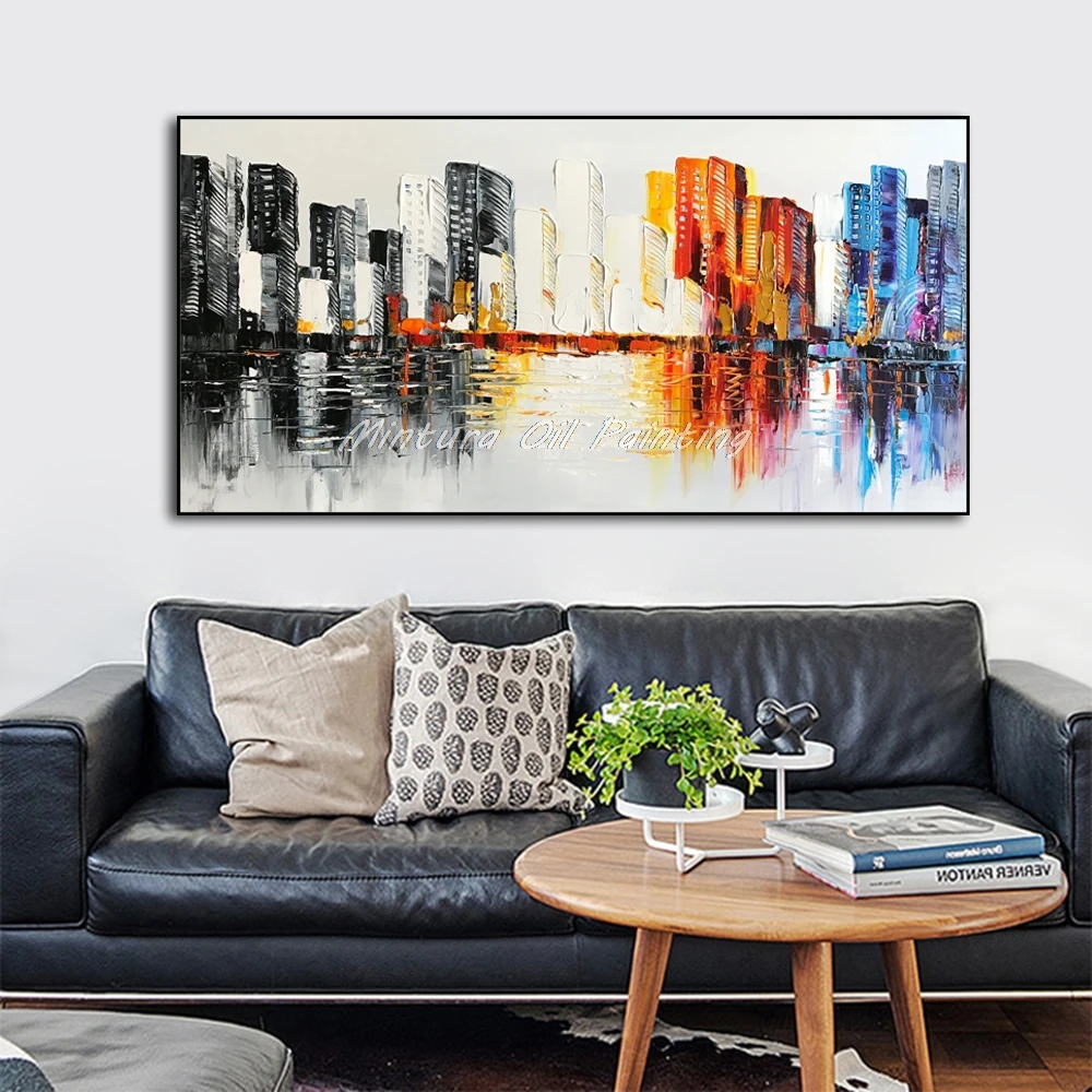 Mintura ручная роспись нож городской пейзаж Масляные картины абстрактный Холст Плакаты Настенная картина для гостиной домашний декор