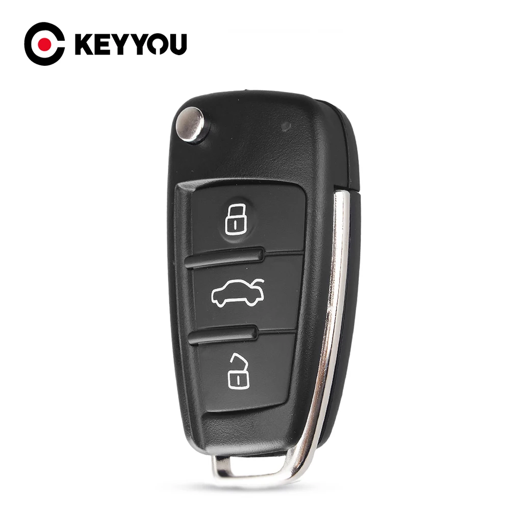 Раскладной Автомобильный ключ KEYYOU с 3 кнопками, раскладной ключ с дистанционным управлением, чехол для ключа для Audi A2 A3 A4 A6 A6L A8 S5 Q7 TT
