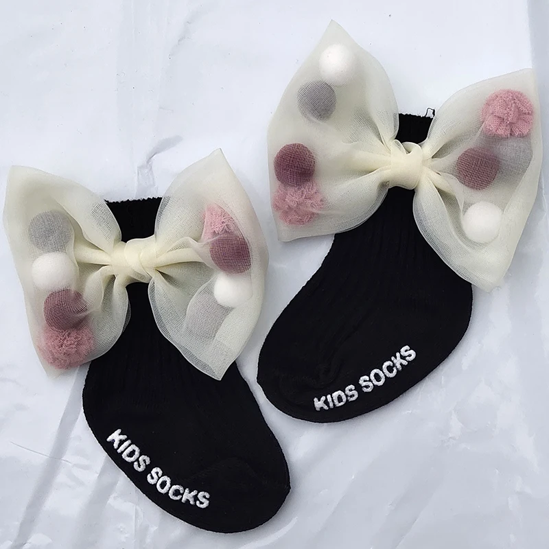 Носки для новорожденных девочек с большими бантиками, хлопковые носки для малышей, детские носки принцессы для девоче
