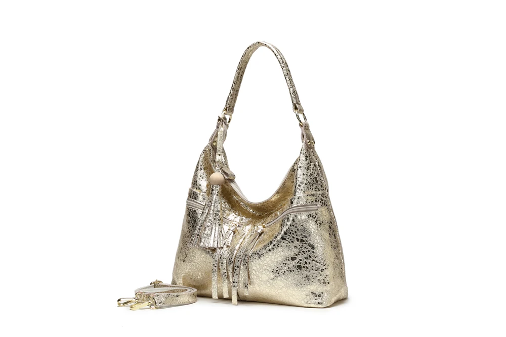 Arliwwi большая блестящая золотая сумка из натуральной кожи, сумки из натуральной кожи, женская модная Новая Большая Сумка через плечо из натуральной кожи GB11