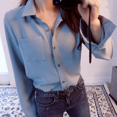 Женская модная блузка 2022, Женские топы и блузки, свободная однобортная рубашка из шифона с длинным рукавом, женская рубашка 2246 50