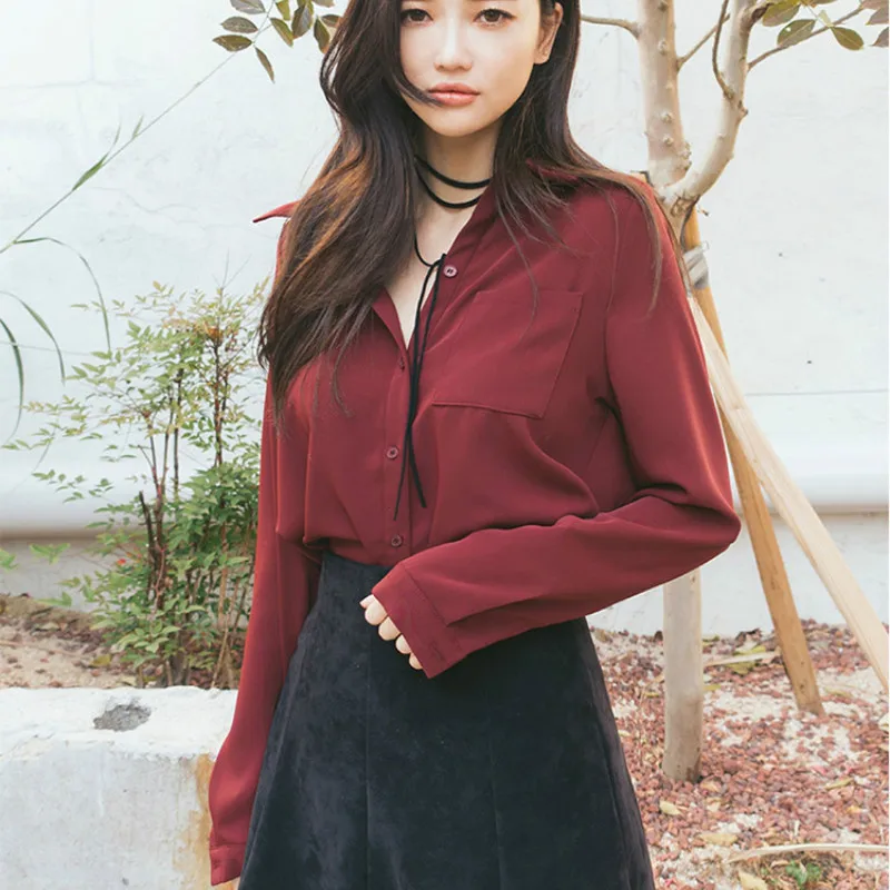 Блузка женская, офисная, с длинным рукавом, осень блузы, шифоновые ...