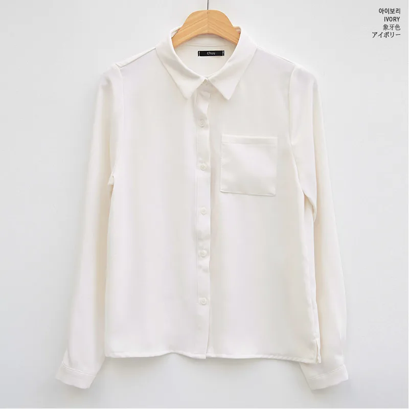 Женская офисная блузка с длинным рукавом и отложным воротником
