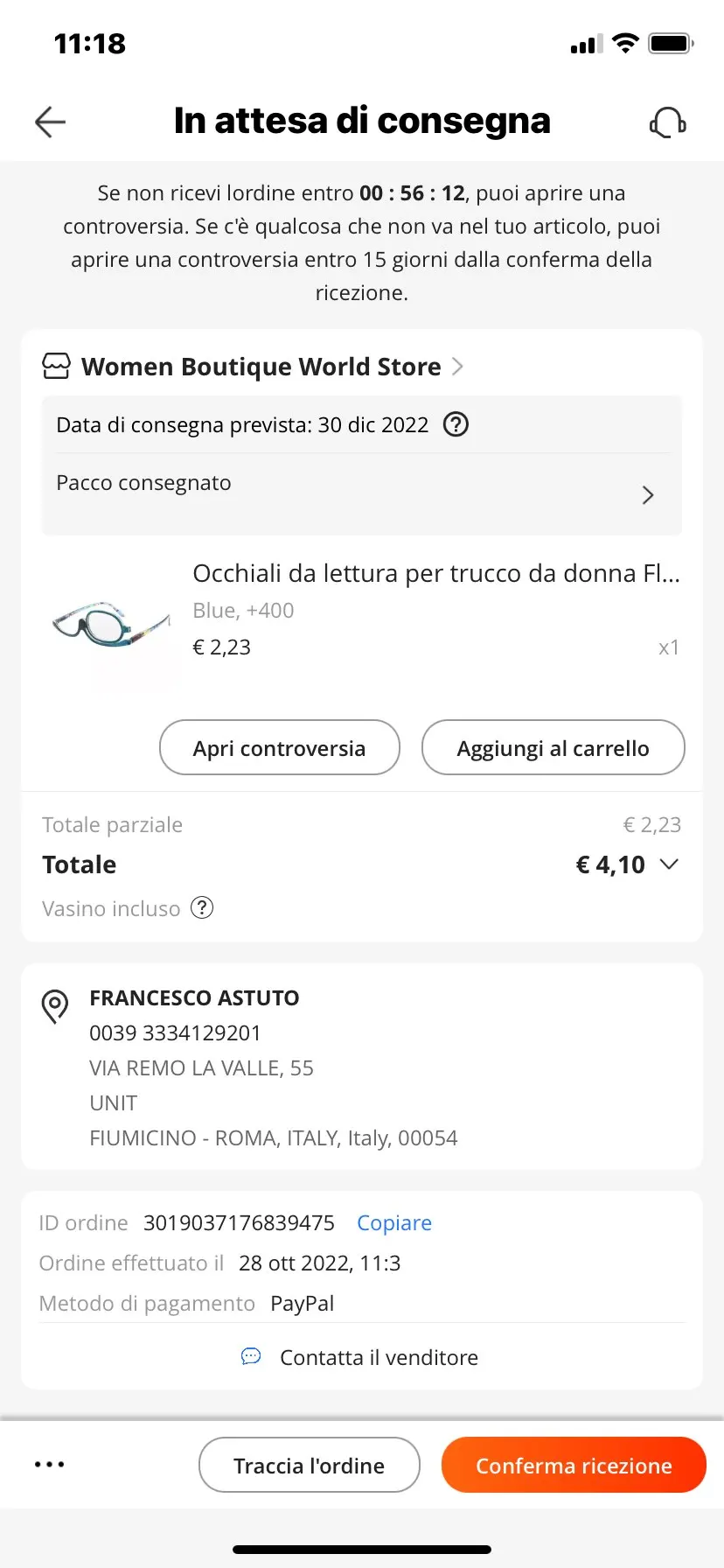 Страна: NL Frame Color: Blue Eye Prescription: +300 Доставка: Cainiao Super Economy Global 12.12.2022