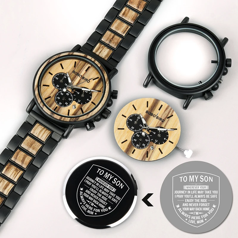 Бесплатная гравировка BOBO BIRD персонализированные мужские часы Лучшие Деревянные Часы на заказ лучший подарок для мужчины Муж папа парня
