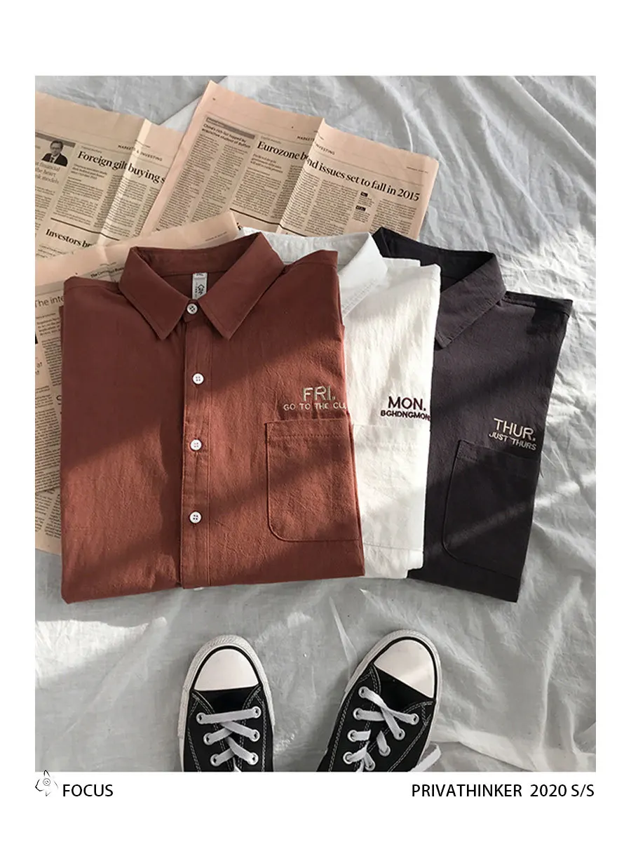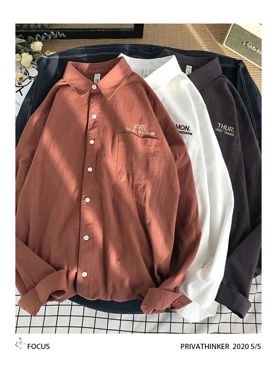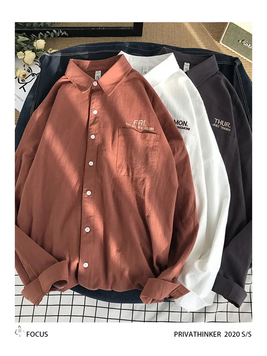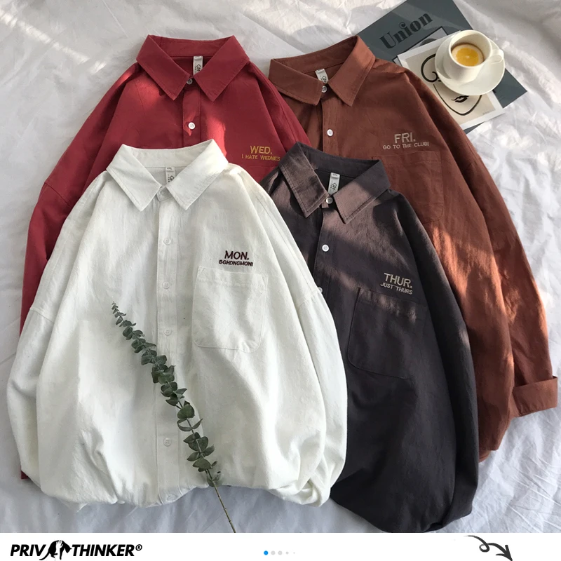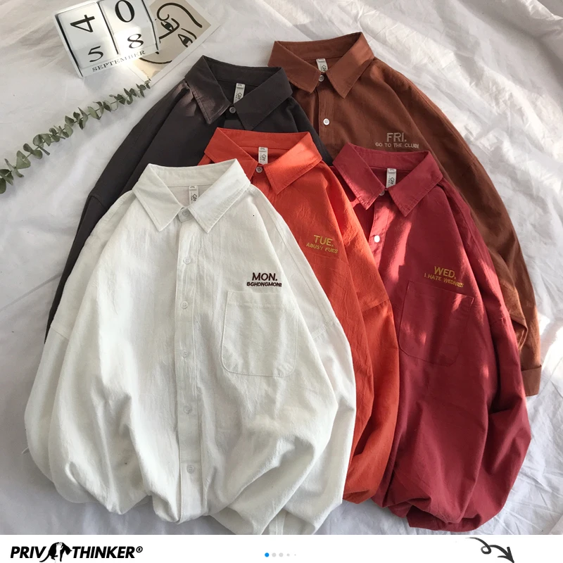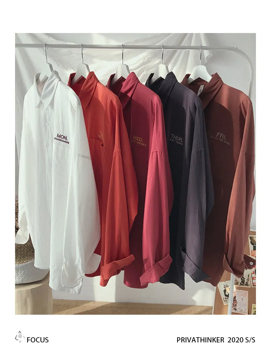 Рубашка Privathinker с вышивкой названий дней недели для женщин и мужчин, модная сорочка с длинными рукавами, блуза в Корейском стиле, уличная одежда, Однотонная футболка, весна, 2020