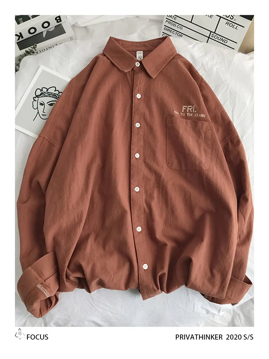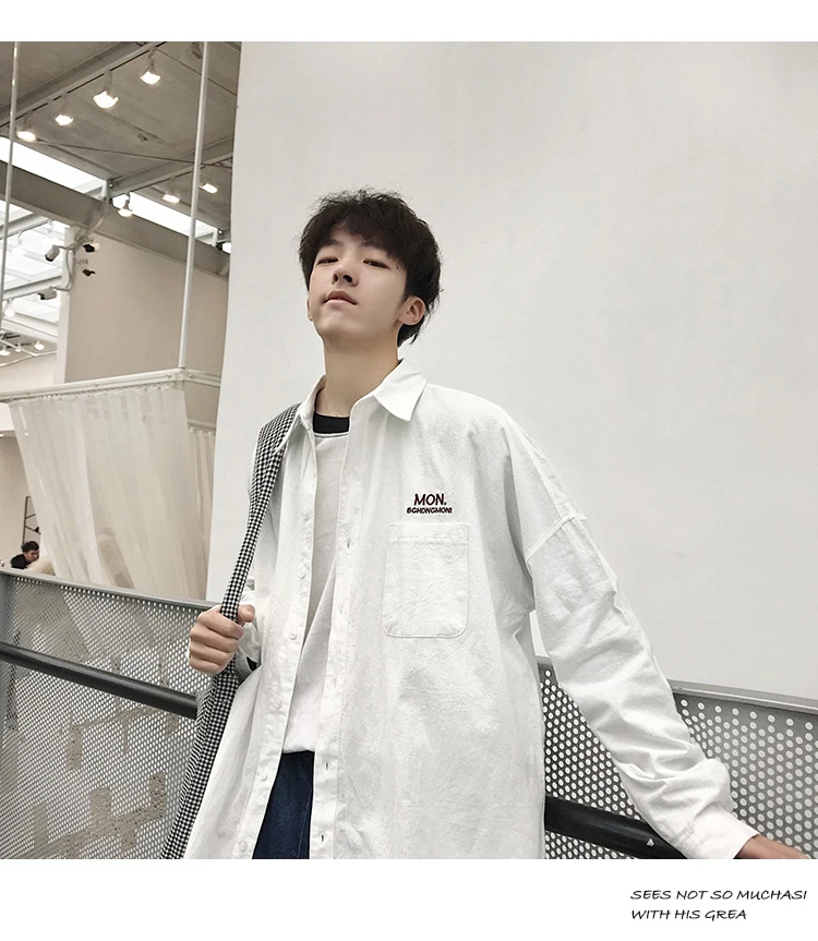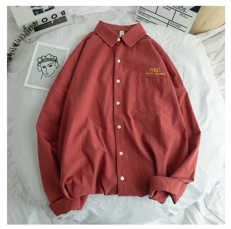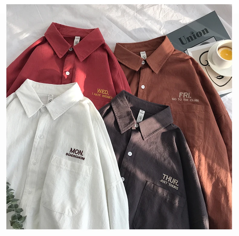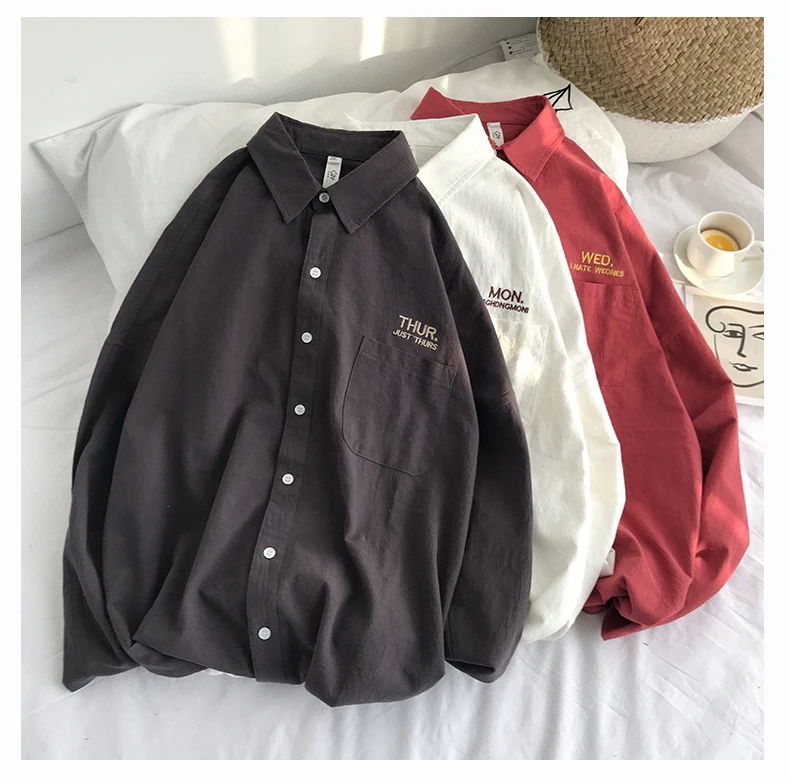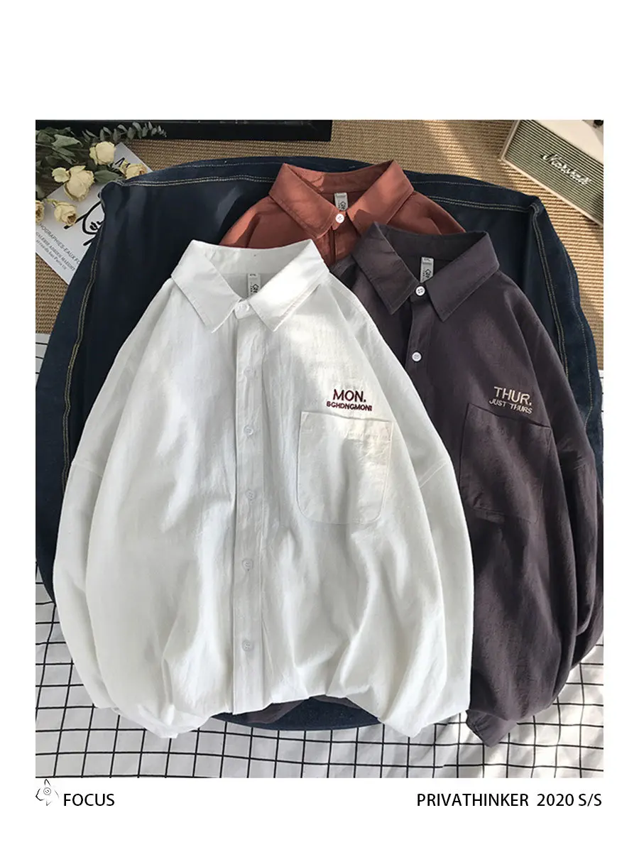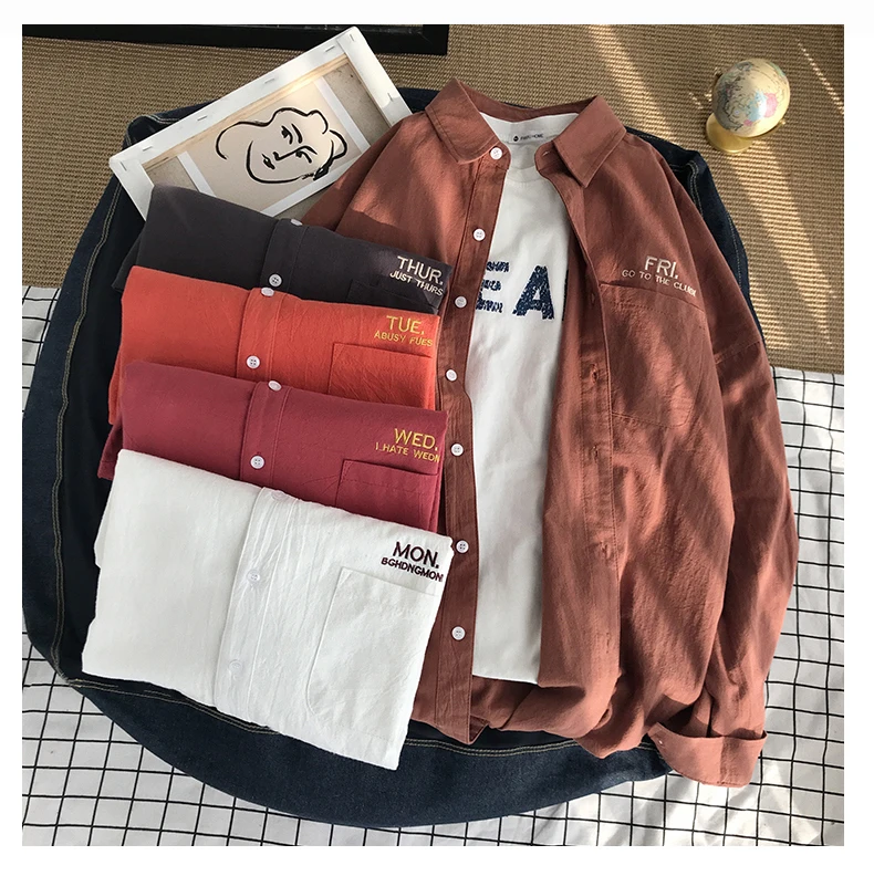 Рубашка Privathinker с вышивкой названий дней недели для женщин и мужчин, модная сорочка с длинными рукавами, блуза в Корейском стиле, уличная одежда, Однотонная футболка, весна, 2020