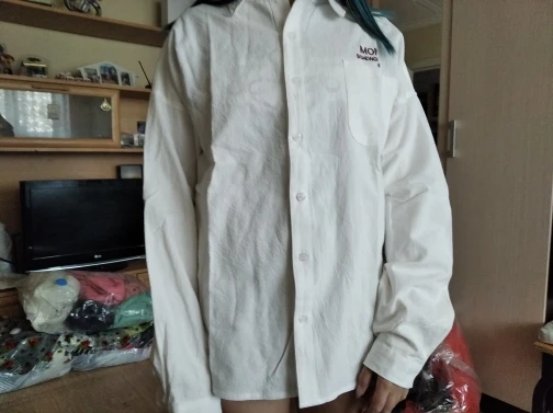 Отличные рубашки, плотная ткань, цвет и фасон соответствуют фото. Запаха не было, упакованы круто. После стирки всё ещё прекрасны. Почти не мнуться, так сто класс! :) Брала на параметры 98-62-100 рост 167 сели идеально оверсайз. Можно в принципе и поменьше, но мне нравится и так.