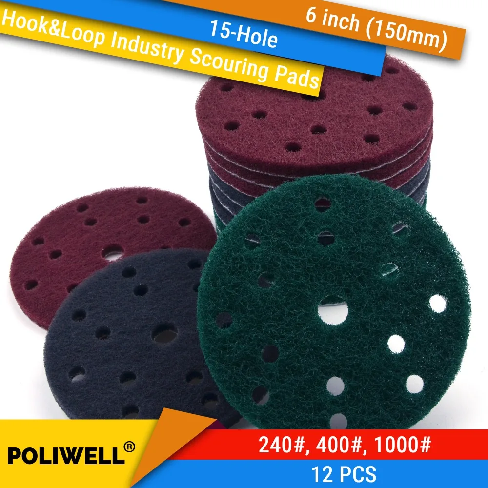 Промышленные Мочалки с круглыми липучками, 6 дюймов, 150 мм, 15 отверстий, 2404001000 Грит, 12 шт.