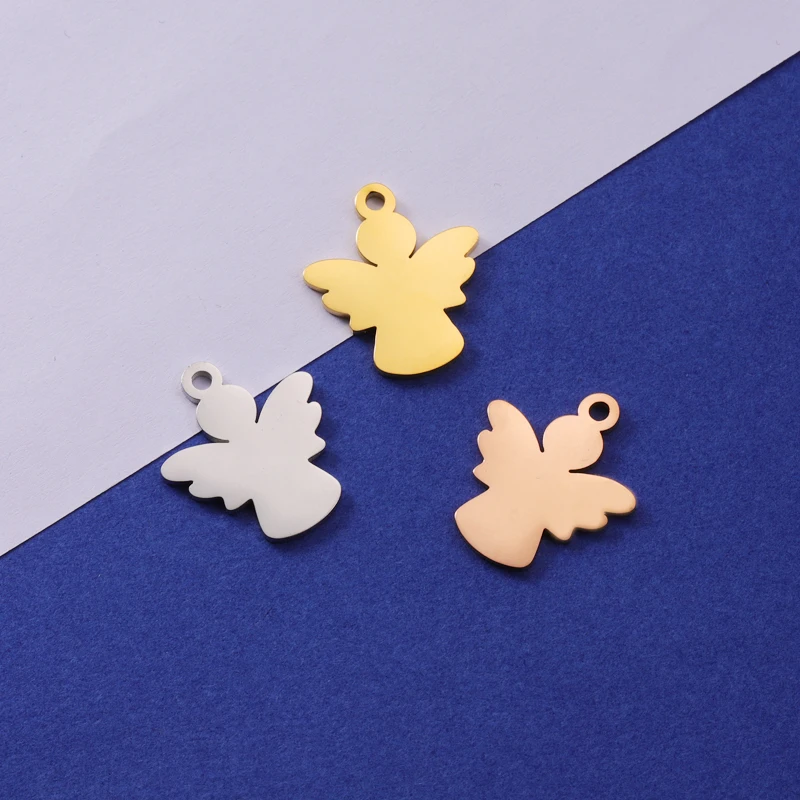 Очаровательная подвеска Fnixtar из нержавеющей стали с зеркальным полированным ангелом, 17*20 мм, сделай сам, Ювелирное Украшение для женщин, 20 шт.лот