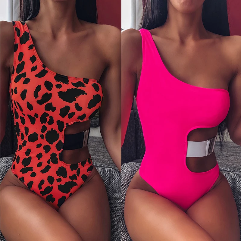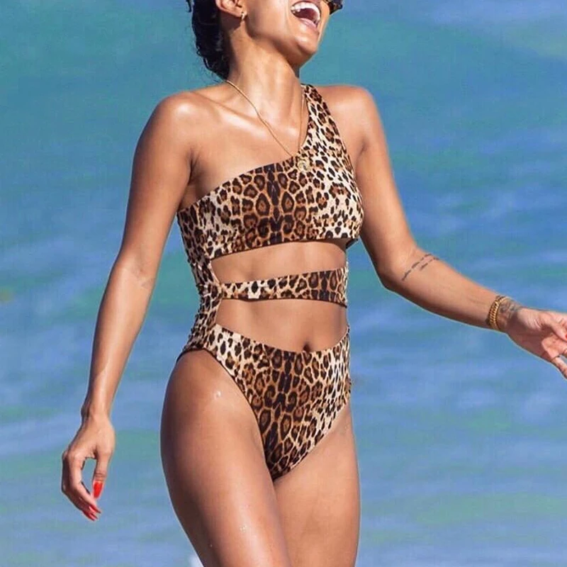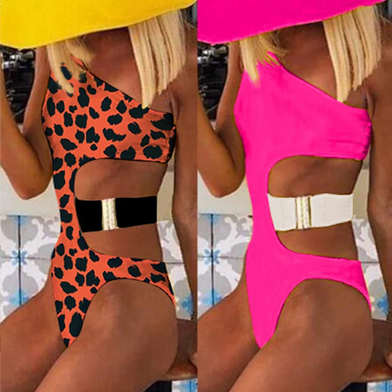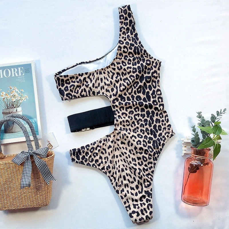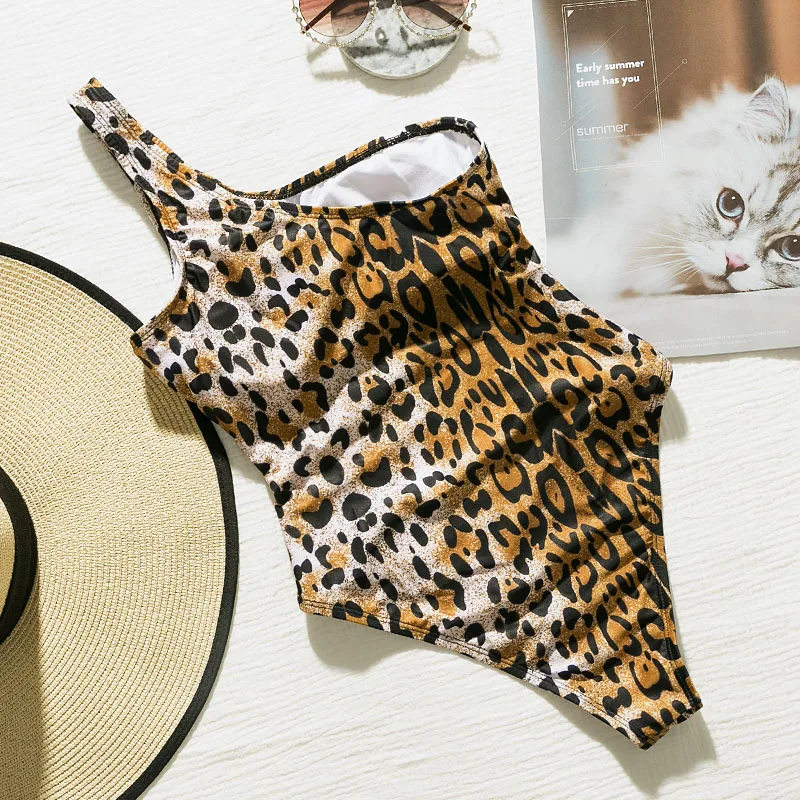 Женский слитный купальник на одно плечо In-X, с леопардовым принтом, бикини с высоким вырезом, купальный костюм с мягкими чашечками, 2020