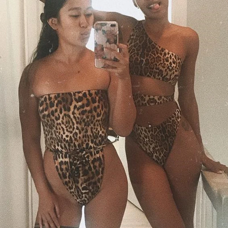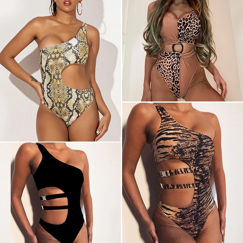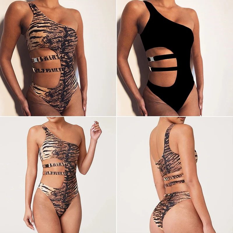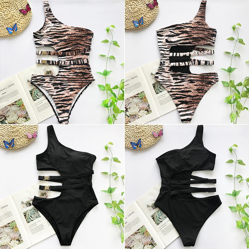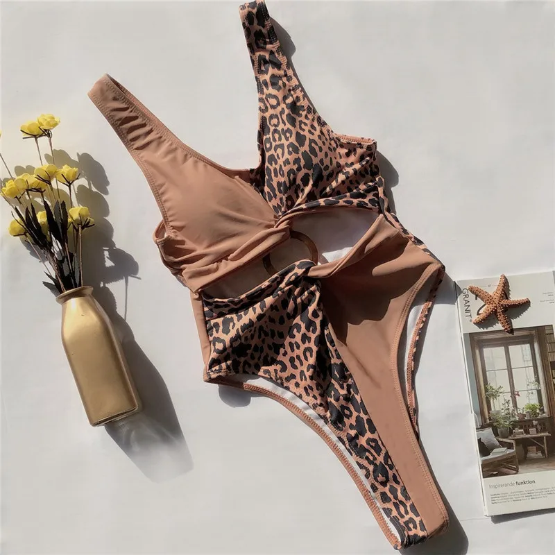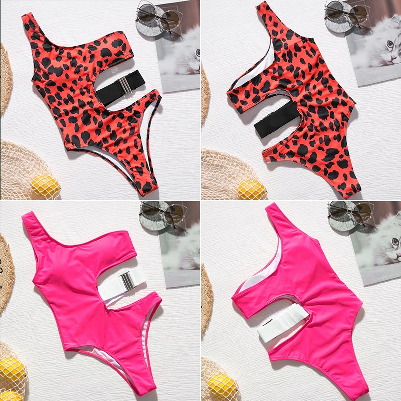 Женский слитный купальник на одно плечо In-X, с леопардовым принтом, бикини с высоким вырезом, купальный костюм с мягкими чашечками, 2020