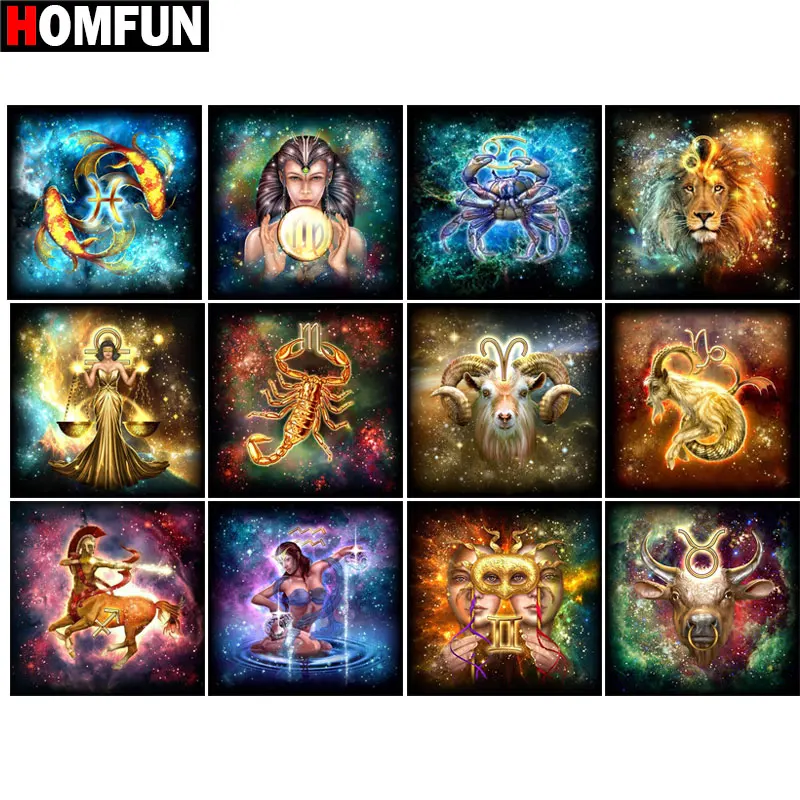 Алмазная 5D картина HOMFUN двенадцать созвездий, вышивка крестиком из квадратныхкруглых страз для творчества, Подарочный Декор для дома