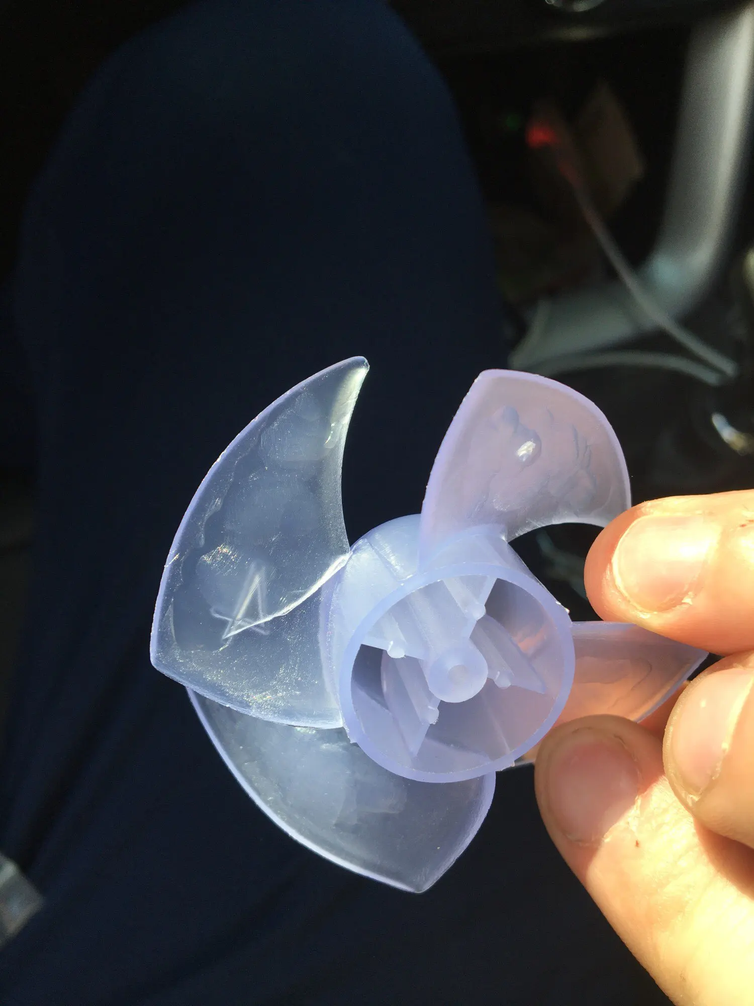 Пришел в составе с более крупной посылкой. Качество исполнения немного странное, как видите на фото с обратной стороны крыльев есть что то типа пузырей пластика, я надеюсь что эти мазоли не повлияют сильно на эффективность. Я не знаю можно ли считать это браком но эти наплывы пластика показались мне странными. Но за эти деньги это норма я думаю )
