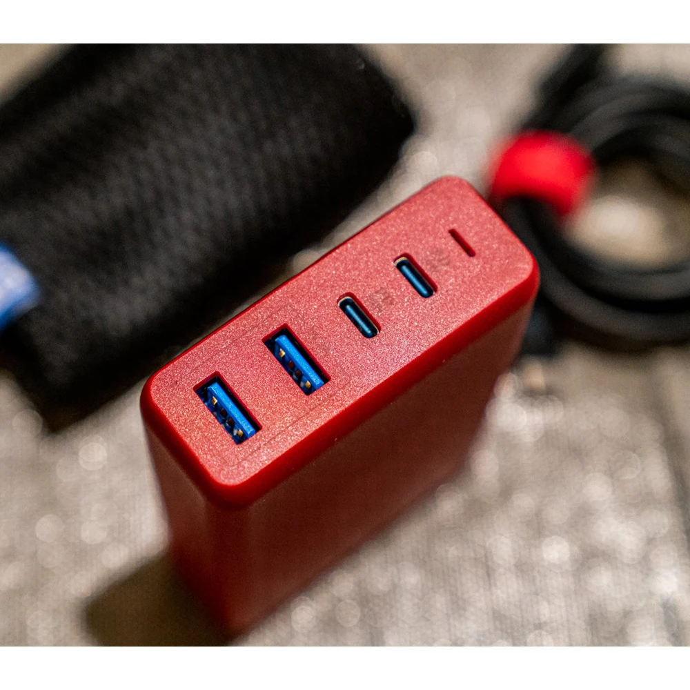 Объединение четырех отдельных адаптеров в одно мощное, гладкое устройство. Два порта PD USB-C (30 Вт, 65 Вт) и два дополнительных порта USB 5 В для одновременной зарядки USB-C ноутбуков, планшетов и других устройств USB-A. Удобно для дома, офиса, путешествий и зарядки в дороге с помощью одного зарядного устройства.