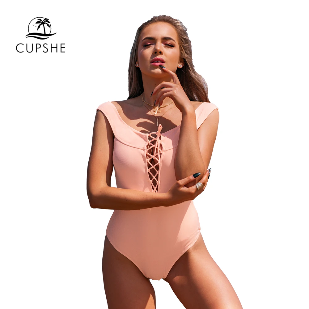 Розовый слитный купальник на шнуровке CUPSHE, Женские однотонные Монокини, купальники для девочек, сексуальные пляжные купальники, 2021