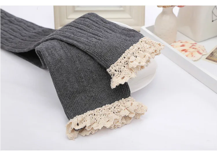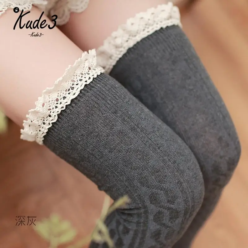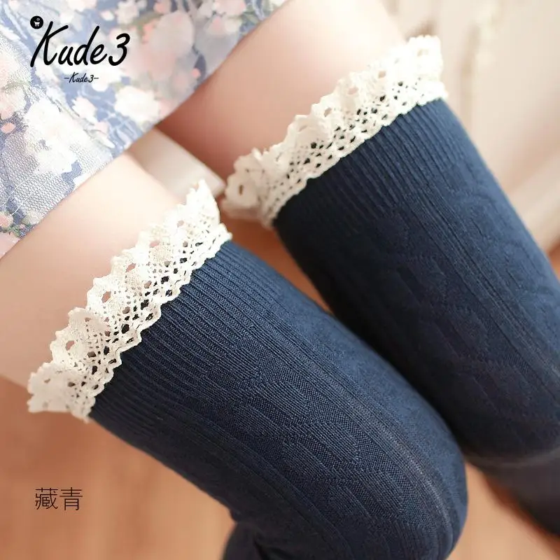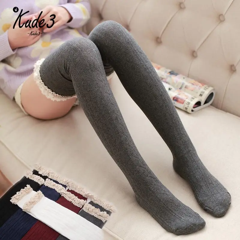 Чулки до бедра, хлопковые, с кружевной отделкой, 5 цветов, 4829