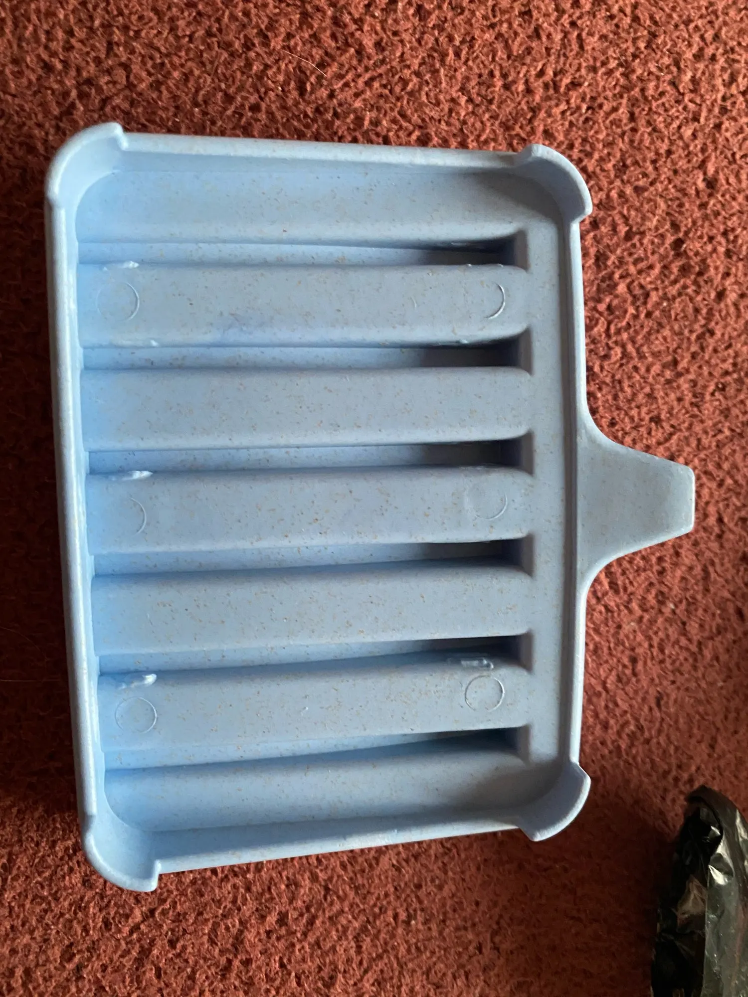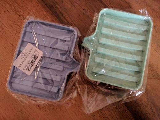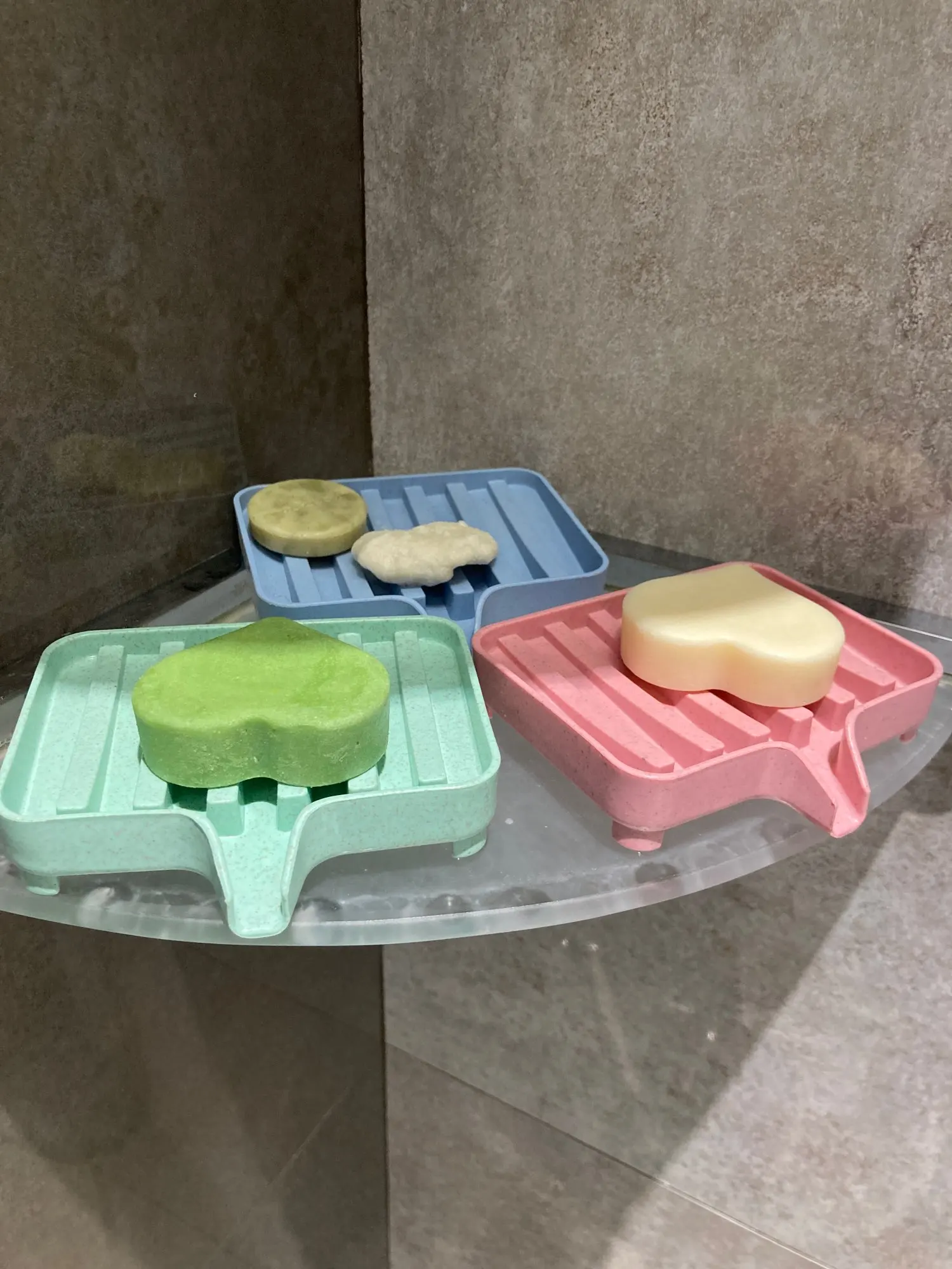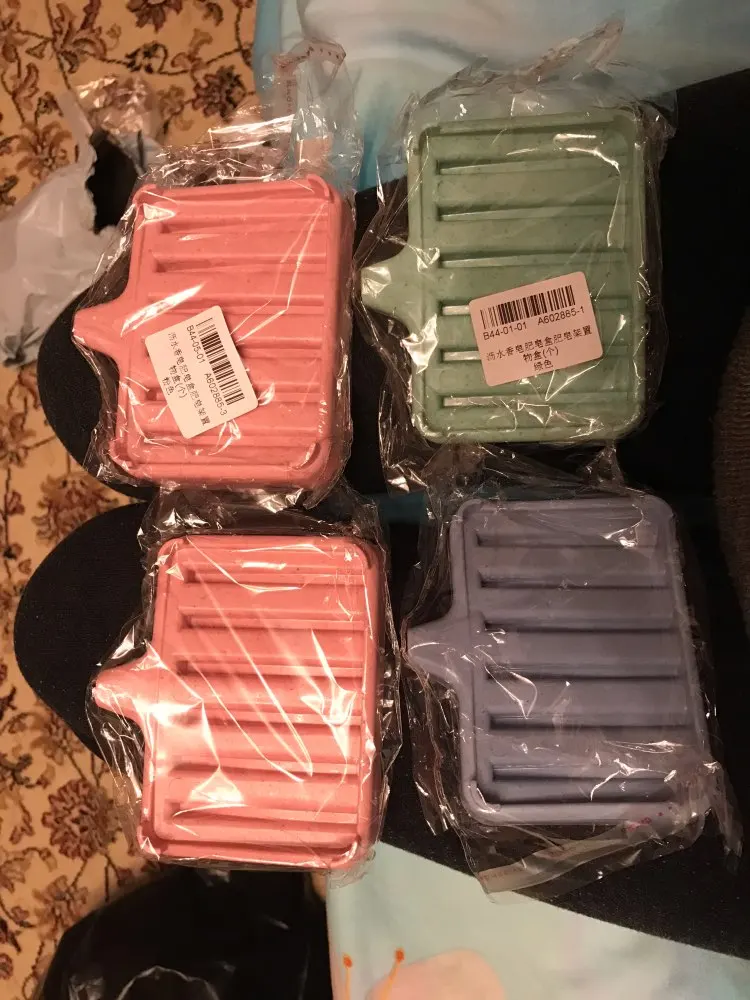 Это очень необходимо для использования в моей ванной комнате с мылом для бара. Я получил три для душа. Все они были светло-голубого цвета. (Мой баланс белого камеры был выключен.) Они изготовлены из твердого пластика и имеют небольшой Наклонный слой внутри. Приятно!