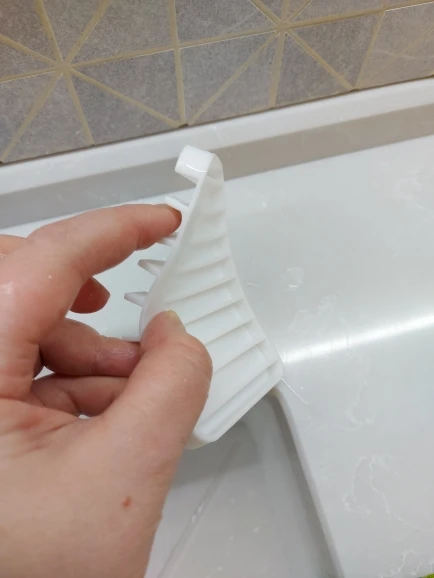 Очень удобная штука. Вода действительно стекает, мыло сухое или губка для посуды. Функциональная вещь.