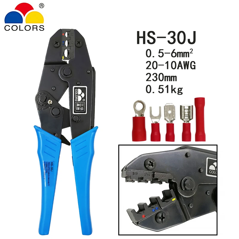 Цветные HS-30J обжимные плоскогубцы Y1B инструмент для зачистки проводов многофункциональные инструменты комплект 4 Челюсти для изоляции неизоляционные трубки pulg терминалы