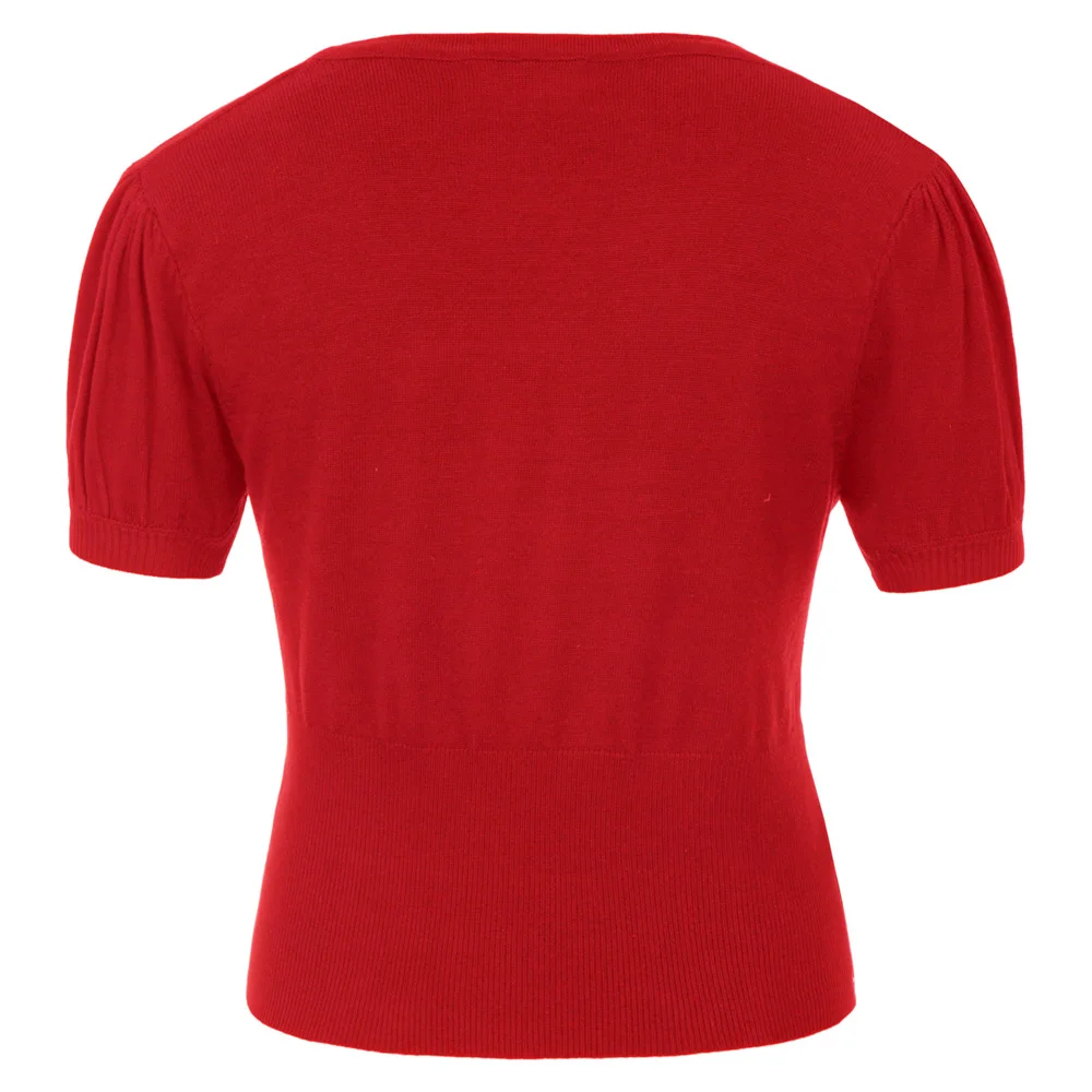 Женское трикотажное пальто с коротким рукавом и пуговицами