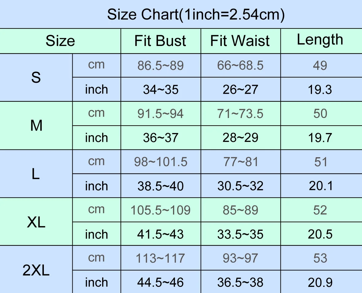 Размер 2XL: подходит для груди 113 ~ 117 см/44,5 ~ 46 дюймов, подходит для талии 93 ~ 97 см/36,5 ~ 38 дюймов, длина 53 см/20,9 дюйма;