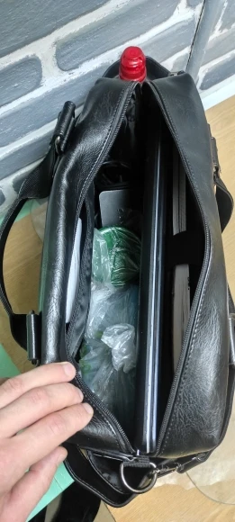 Сама по себе сумка большая и крепкая, и в то же время тяжёлая. Но. В отсек для ноута мой 15.6 дюймов не влез, туда только 14 максимум влезет, но вообще 15,6 влазит в сумку. Помимо ноута ещё влезли два контейнера с едой, бутылка воды, зарядки, мышка, ежедневник и книга. Так что вместительная. Сначала был запах, выветрился. Удобно. Покупкой доволен.