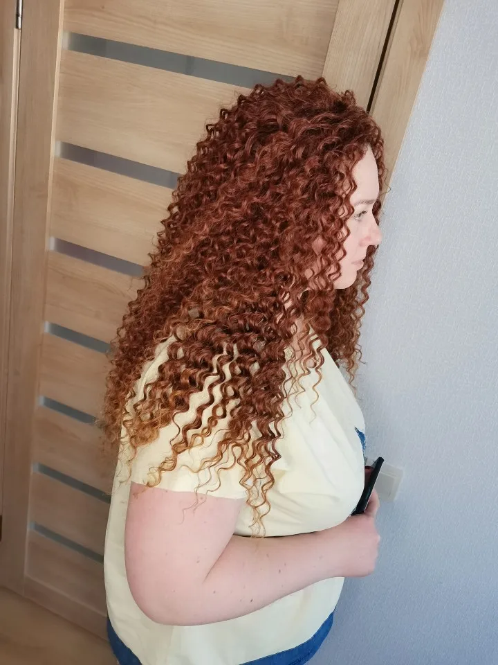Я в восторге от этих волос. Начнём с доставки, мега быстрая. Что очень радует. Спасибо продавцу. Отправил быстро и пришло быстро. Это плюс большой. Теперь о качестве. За эту цену, прям очень супер качество. Приятные на ощуп. Заказываю не первый раз. До этого брала в другом магазине, длинна 75 см.шикарные,но в носке они себя не оправдали. Думала и эти будут так же. Но я была приятно удивлена, три недели ношу, помыла в мыльной воде, расчесала крупной расчёской и они опять как новые. Это первые волосы которые после мытья опять новенькие, стоит их расчесать. И выглядят очень натурально. Всё спрашивают вы от природы кудрявые? Рекомендую однозначно. Буду заказывать постоянно. Так как уже очень привыкла к такому образу. Год хожу с таким наращиванием. Магазин супер, доставка супер, волос шикарный